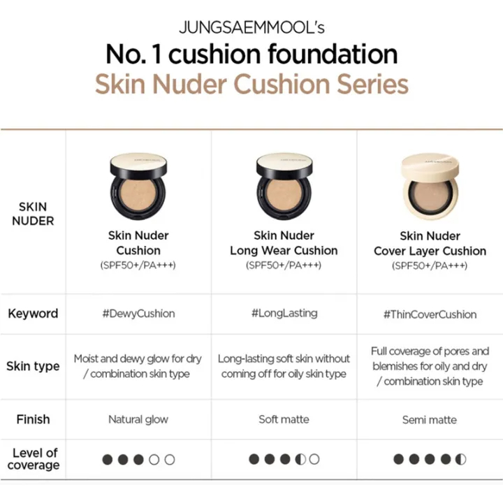 JUNG SAEM MOOL Skin Nuder Cover Layer Cushion Set - Refill Included | All-day Lasting