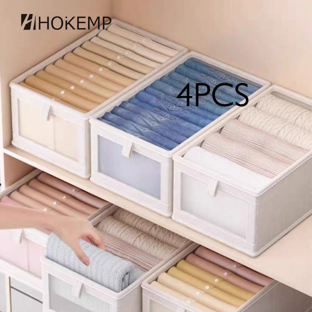 HOKEMP 4PCS Large Storage Organizer Box Foldable Fabric Bins for Baby Clothes Underwear Closet Use
