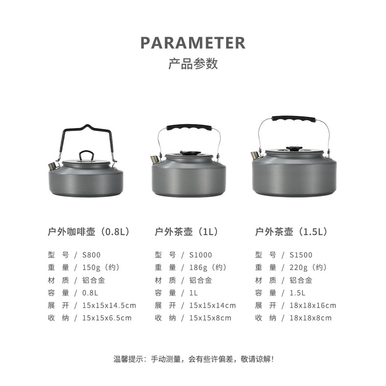 Campingmoon S800 Lightweight Aluminum Coffee Pot Large Capacity Camping Kettle Three Sizes Available with Carry Bag Fast Heating Portable Outdoor