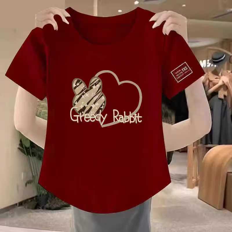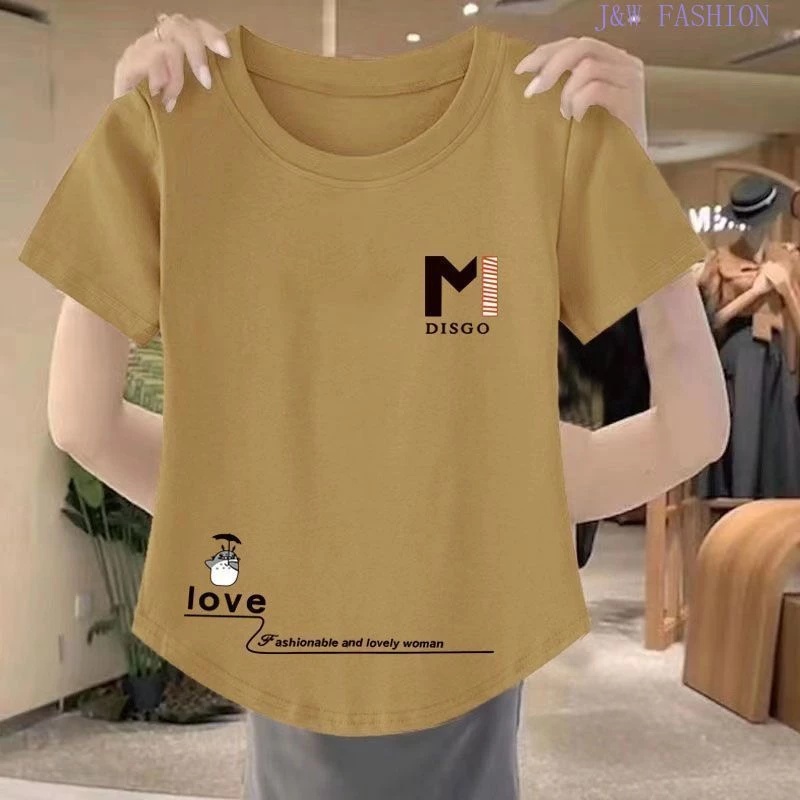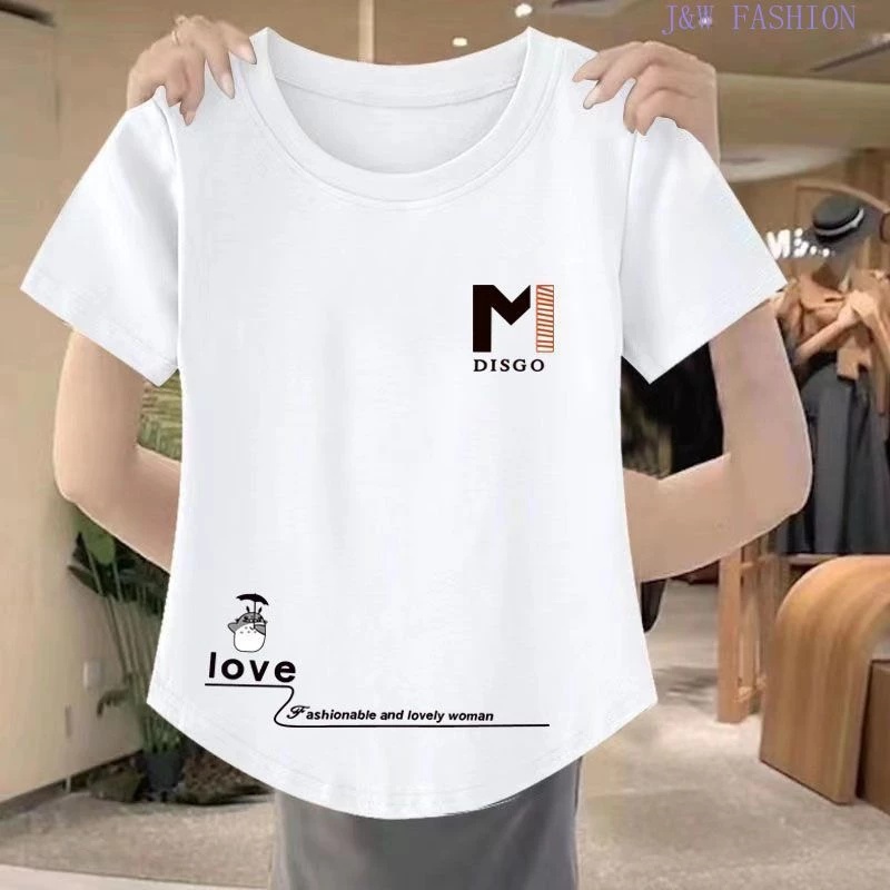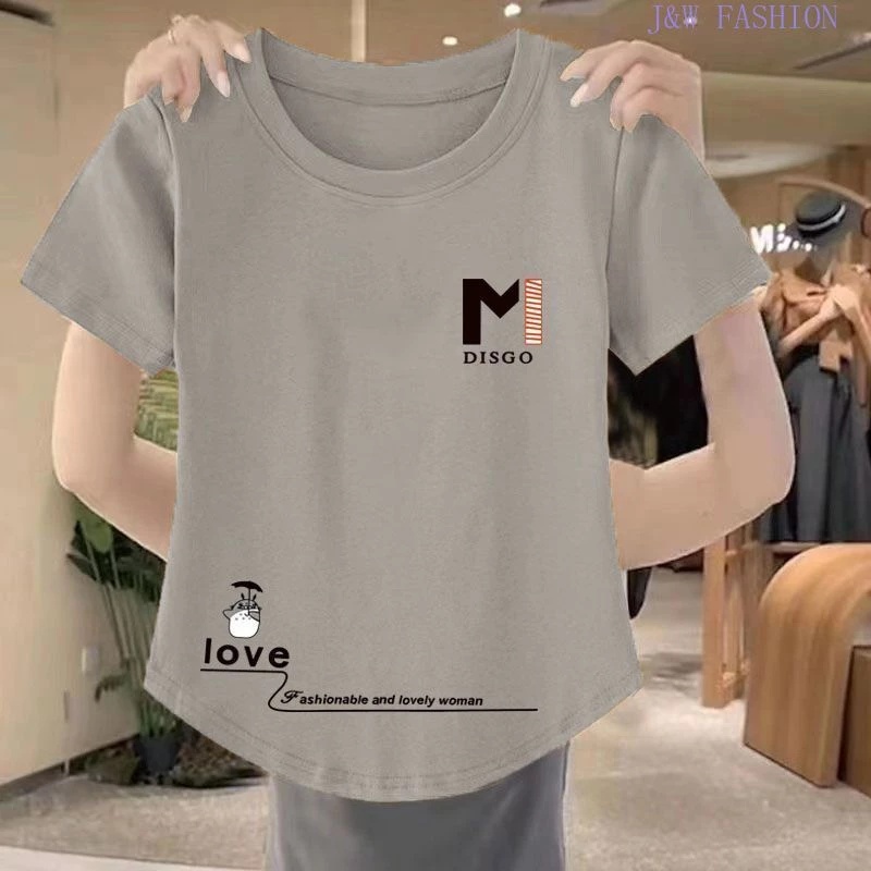 Blouse for Women Plus Size Korean Style Casual Letter Printed Round Neck Short-sleeved T-shirt L2247