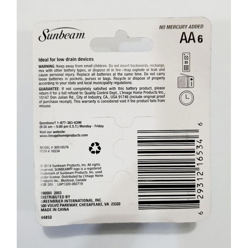 Sunbeam Super Heavy Duty 6pcs Double AA Batteries, Ideal For Low Drain Devices