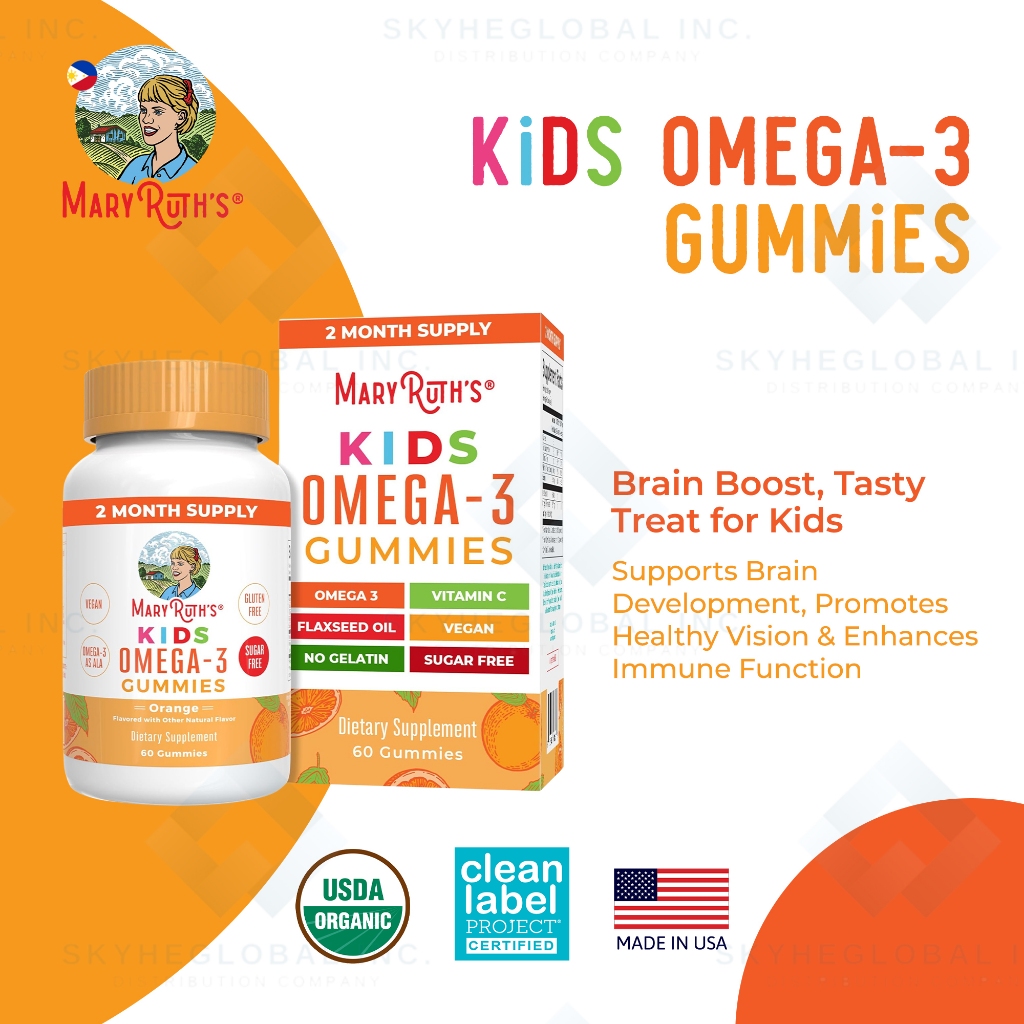 Mary Ruth's Vegan Kids Omega-3 60 Gummies Plant-Based Omega-3 for Immune l Health
