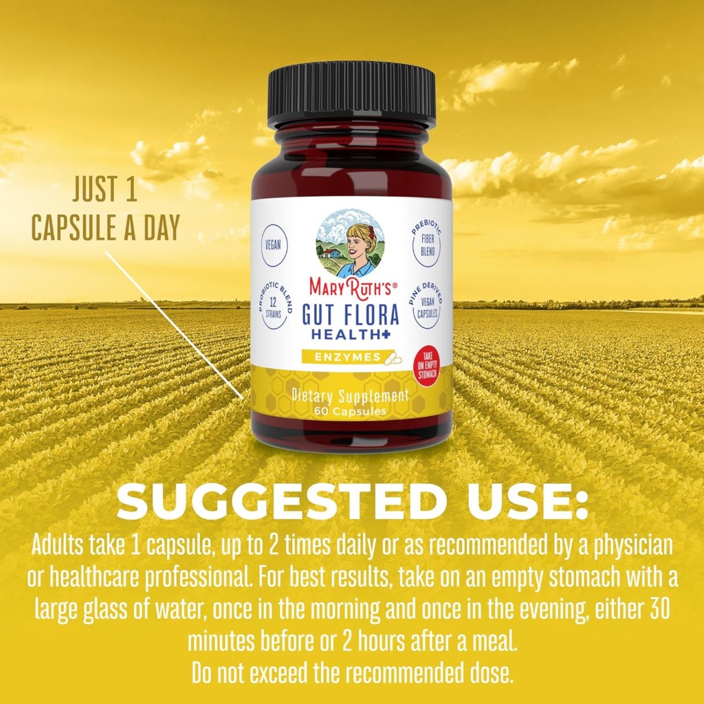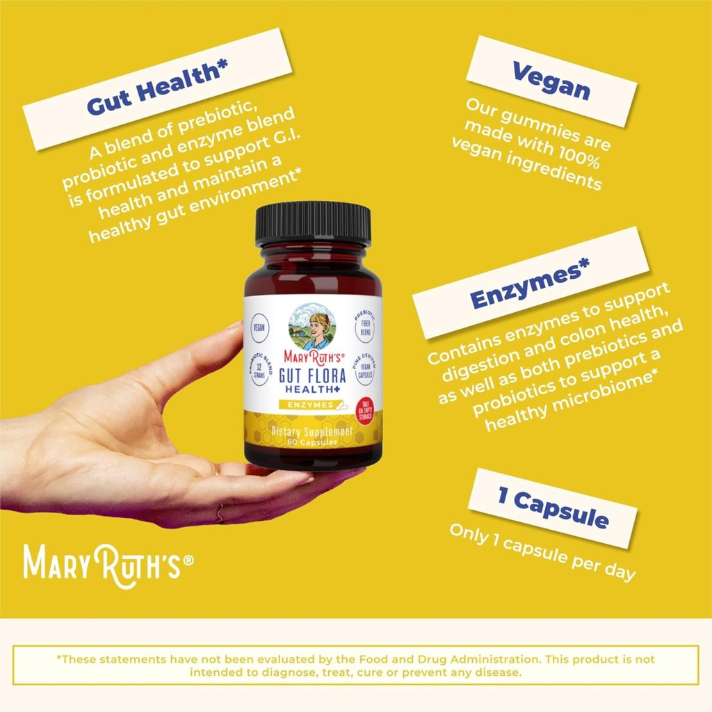 Mary Ruth’s Gut Flora Health+ Enzymes 60 Capsules Digestive l Gut Health Support