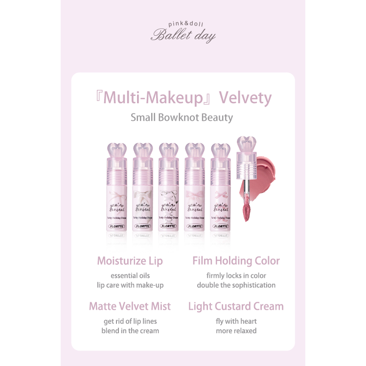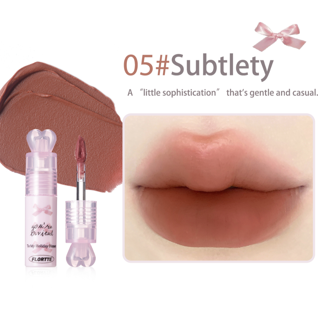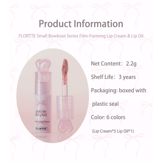 Flortte Matte Liquid Lipstick Small Bowknot Series Film-Forming Lip Cream Liptint Non-sticky