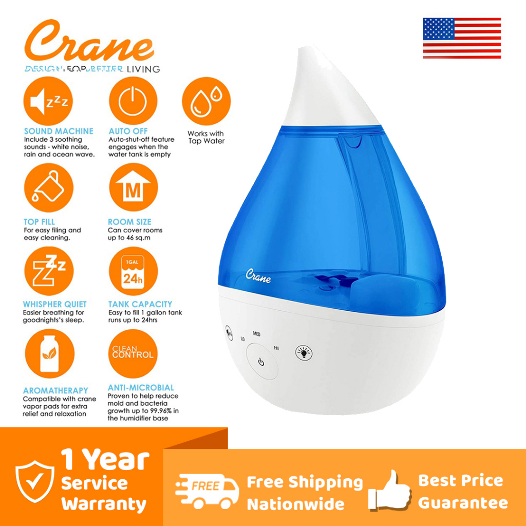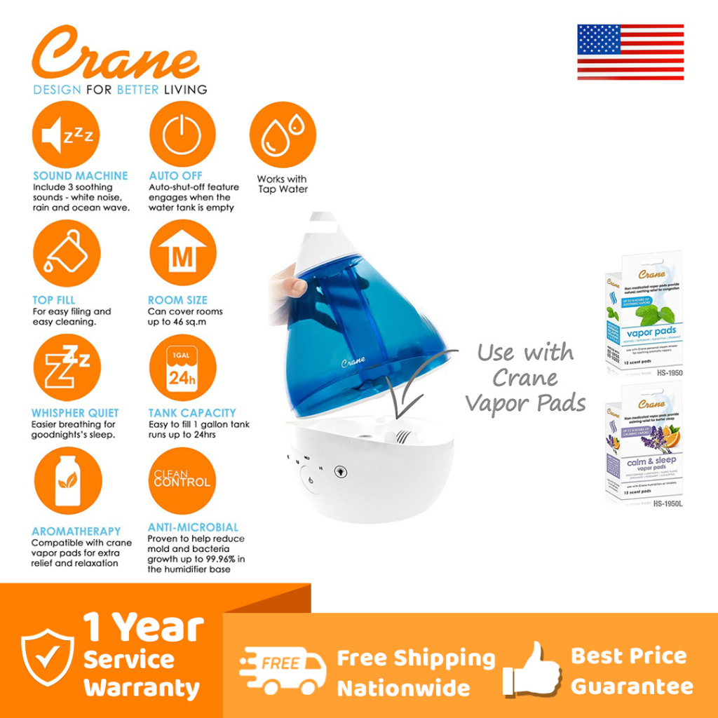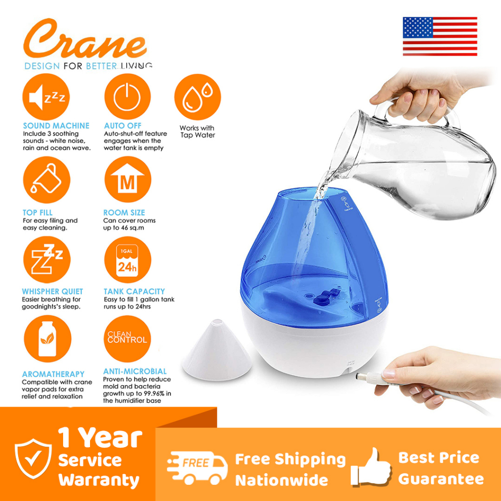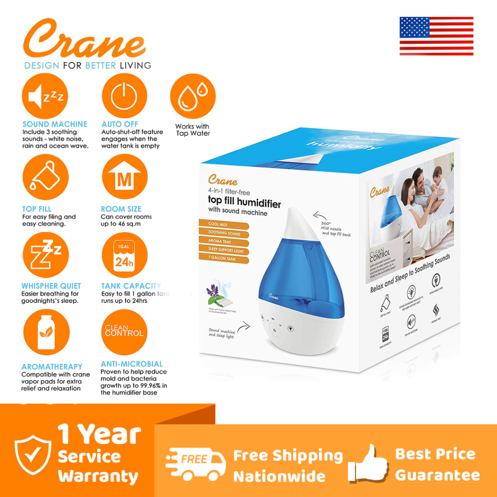 Crane 4-in-1 Top Fill Cool Mist Humidifier w/ Sound Machine and Vaporizer Function for Inhalation -