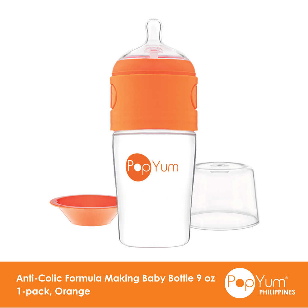 PopYum Anti-Colic Formula Making Baby Bottle 9 oz, 1-pack, Orange
