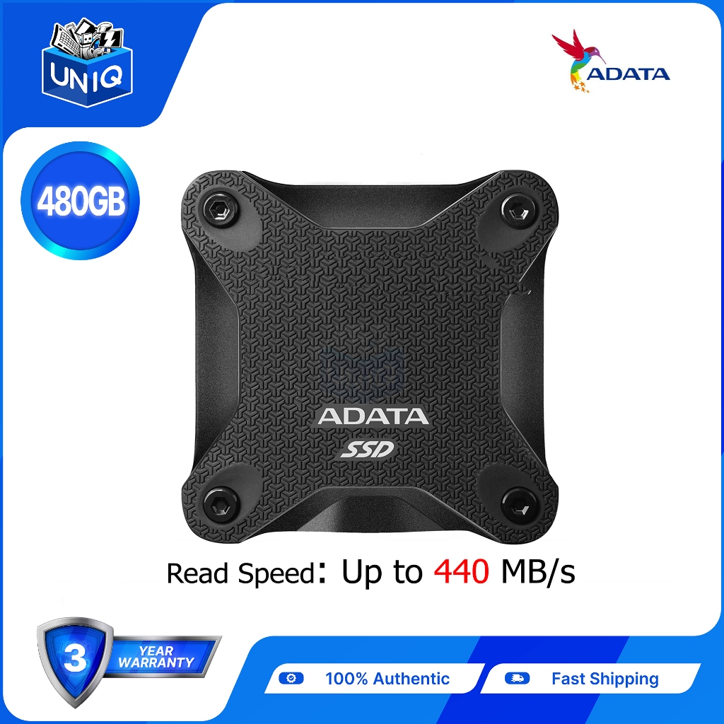 Adata SD600Q 480GB (ASD600Q-480GU31-CBK) USB 3.2 Ultra-speed Portable Durable External SSD
