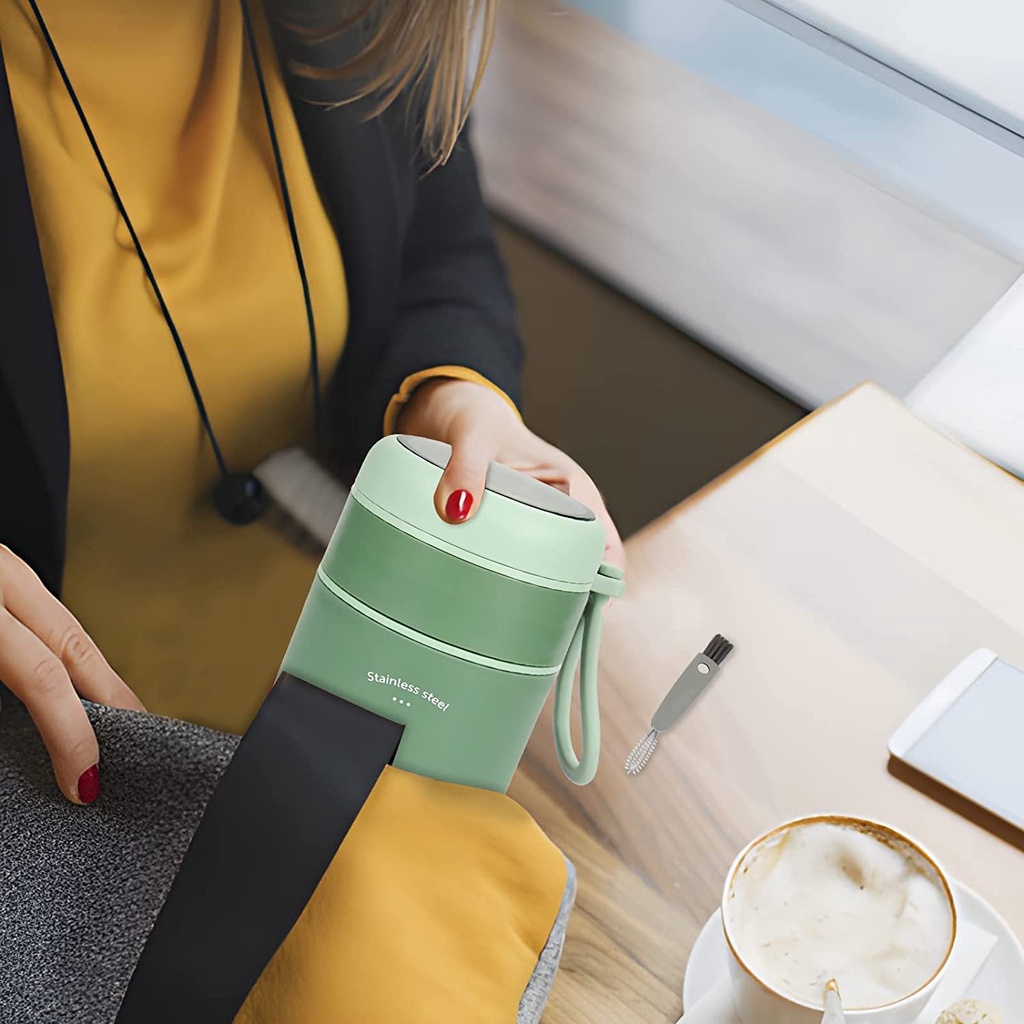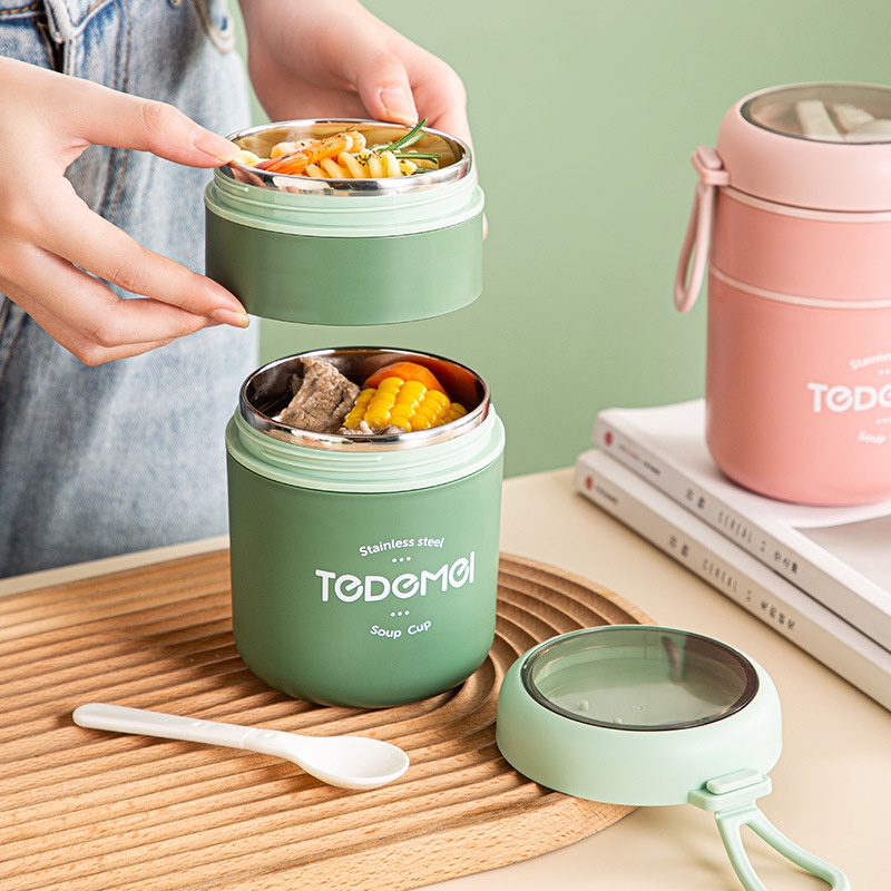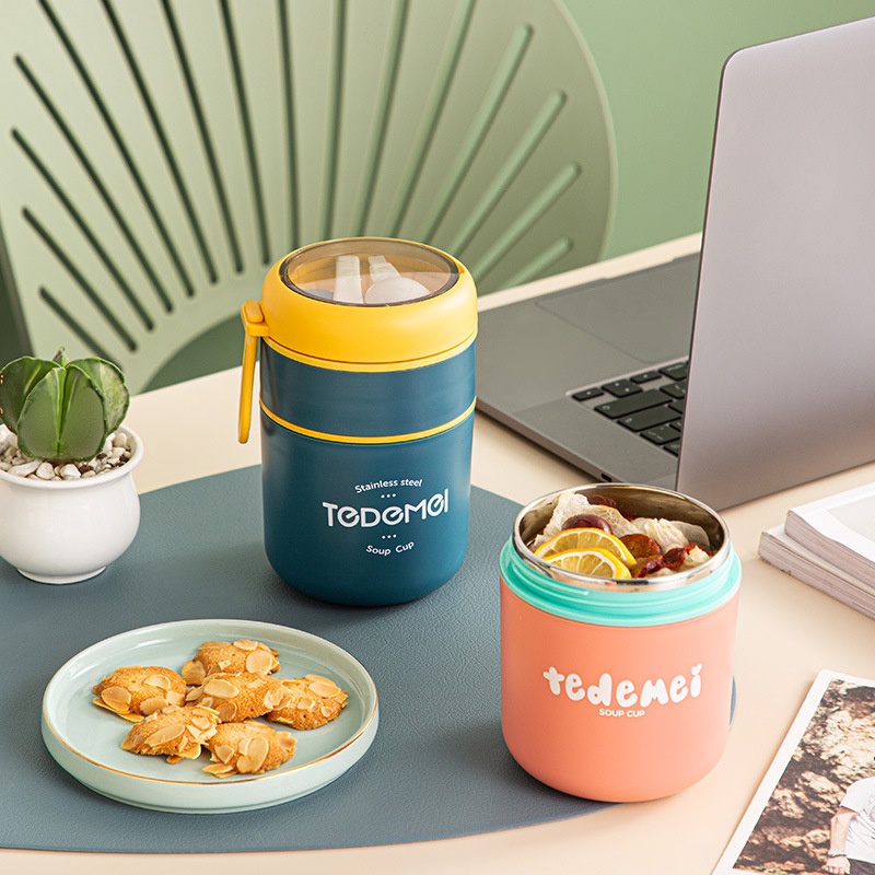 Stainless steel insulated lunch box barrel, double-layer Japanese soup cup, sealed breakfast cup, with cover spoon, s YUE