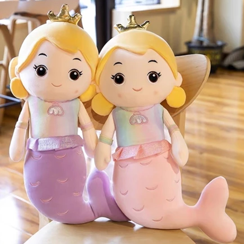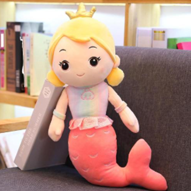 Mermaid Doll With Crown Stuffed Toy 40CM Cartoon Sleep Pillow Doll Mermaid Plush Doll Kids Girl Gift