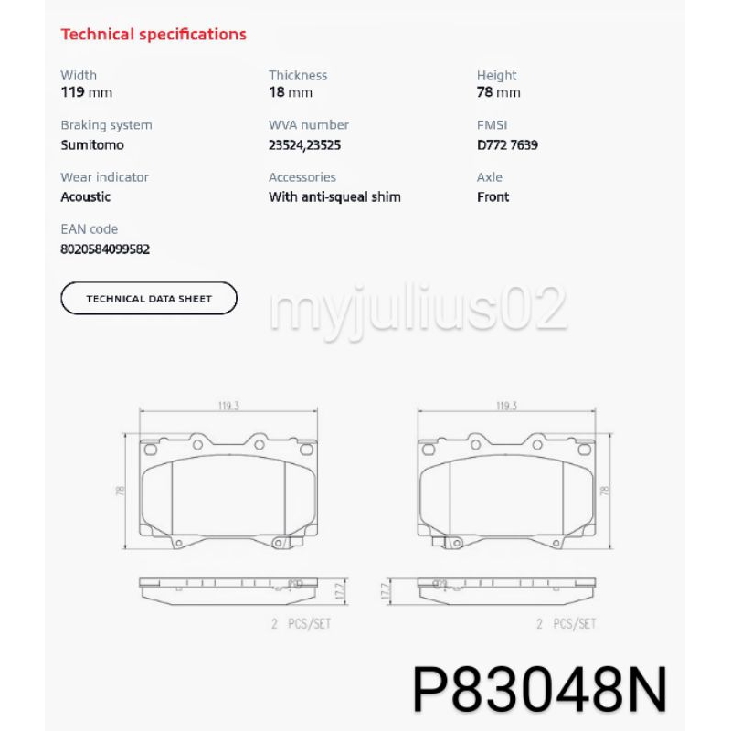 Brembo Brake Pad (P83048N) Front Toyota Land Cruiser 100 1998-2007; Series 70 2010