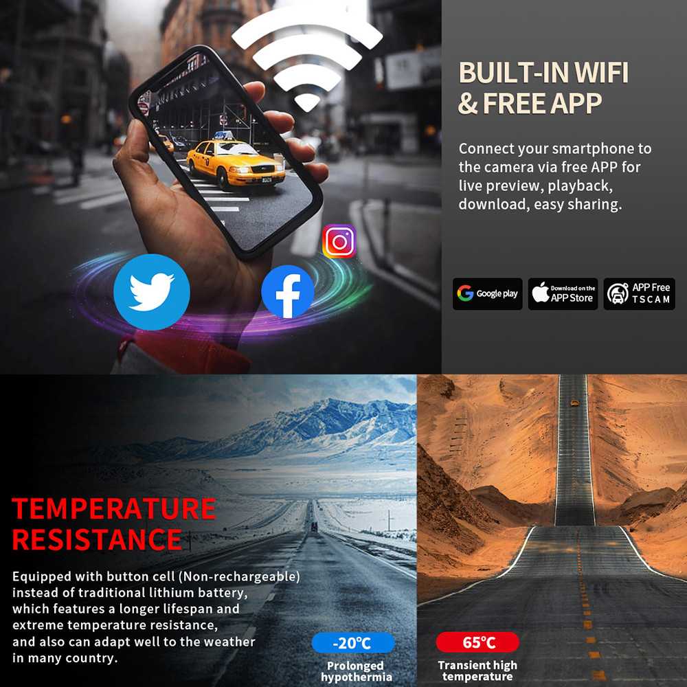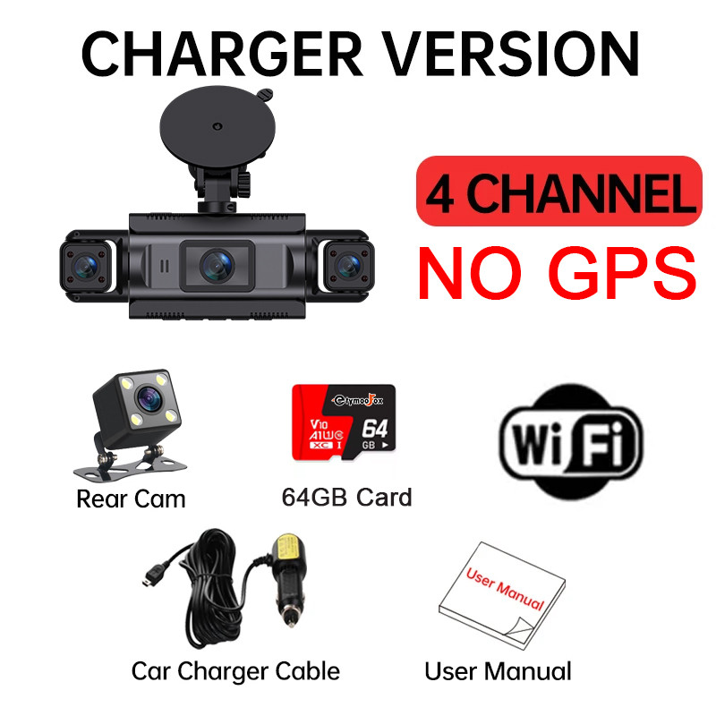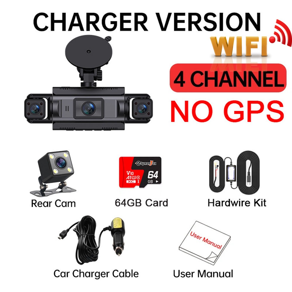 4 Channel WiFi Dash Cam for Cars Front+Left+Right+Rear 4*1080P Car Camera with 64G Card APP Control