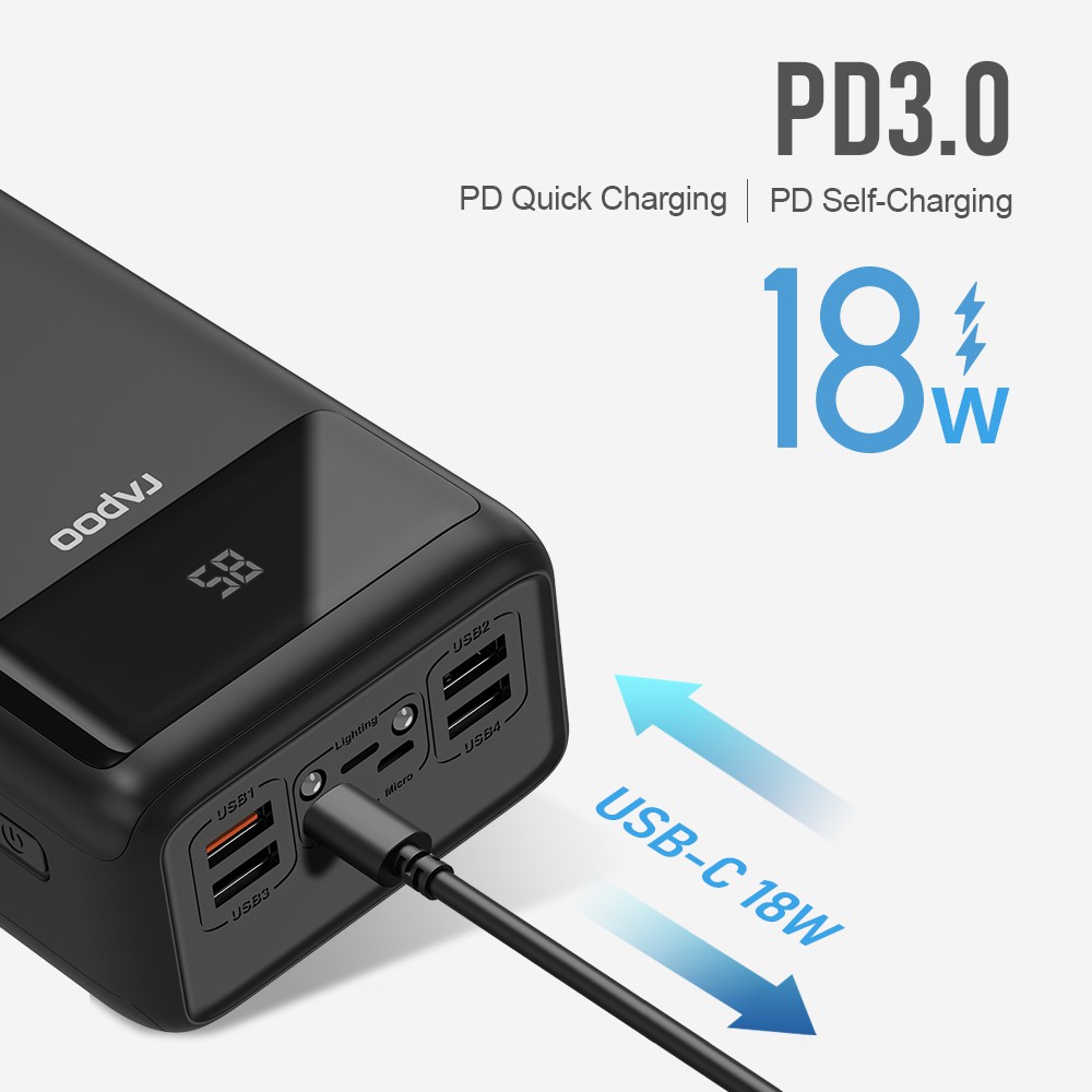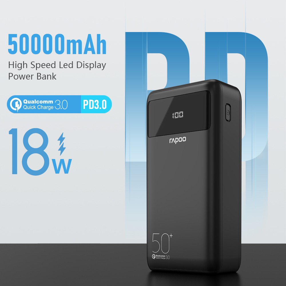 Rapoo S50 Pro 50000mah 18W Original Powerbank Fast Charging LED Digital Display 5 Output Power bank