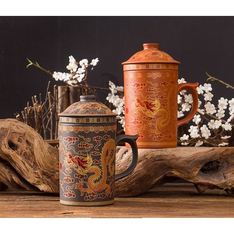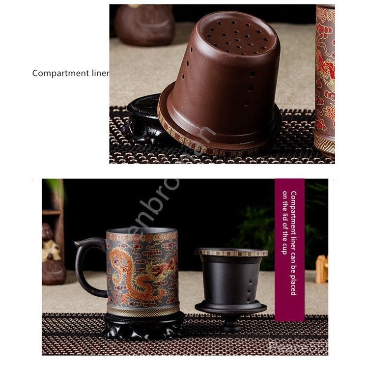 Office Home Cup Zisha Teacup Gift Traditional Mug Tumbler Chinese Dragon Purple Clay Tea Mug with Lid Strainer Handmade UKDK