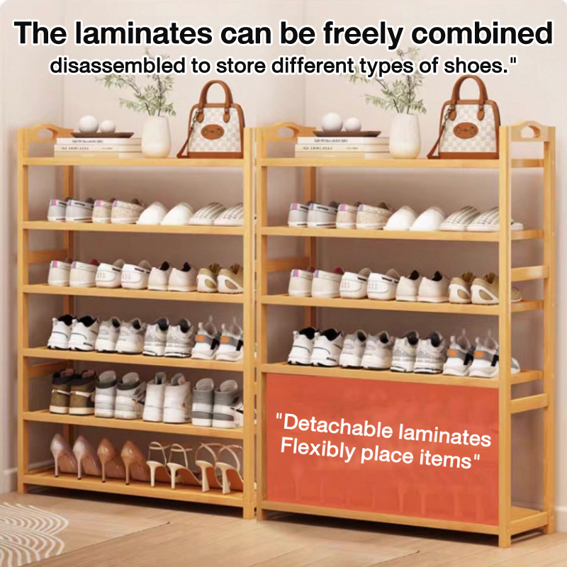 【On Hand】Bamboo Shoe Rack Organizer Wood Shoe Storage Rack 30+ Pairs Of Shoes Rack 3/4/5/6/7 Layers