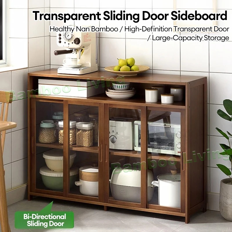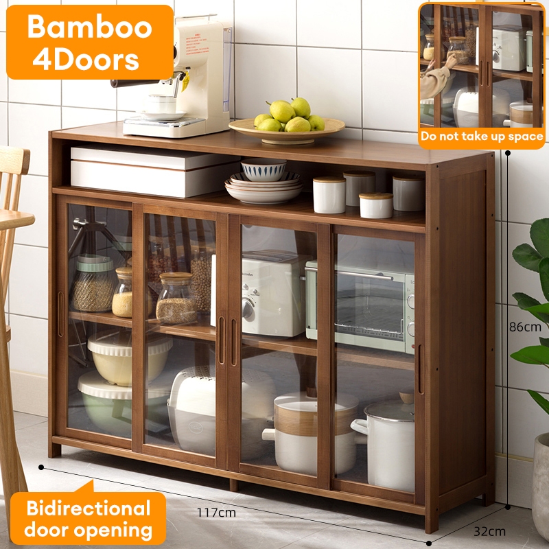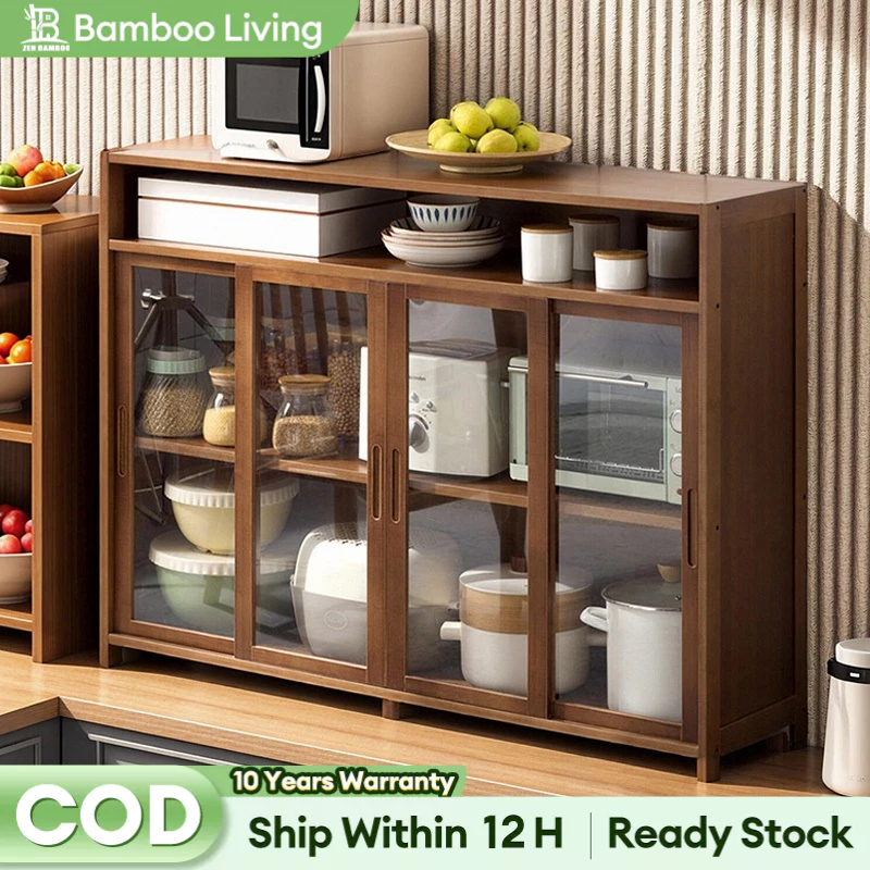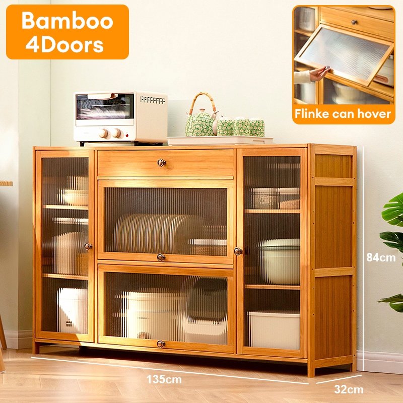 【On Hand】Bamboo Kitchen Storage Cabinet Kitchen Cabinet Hanging Cabinet Kitchen Island Table Counter