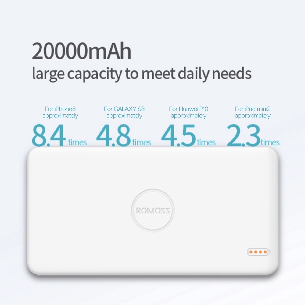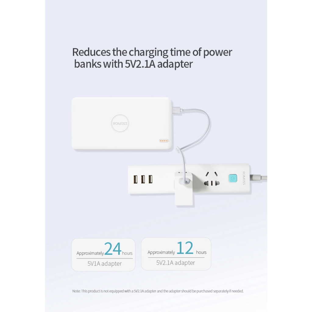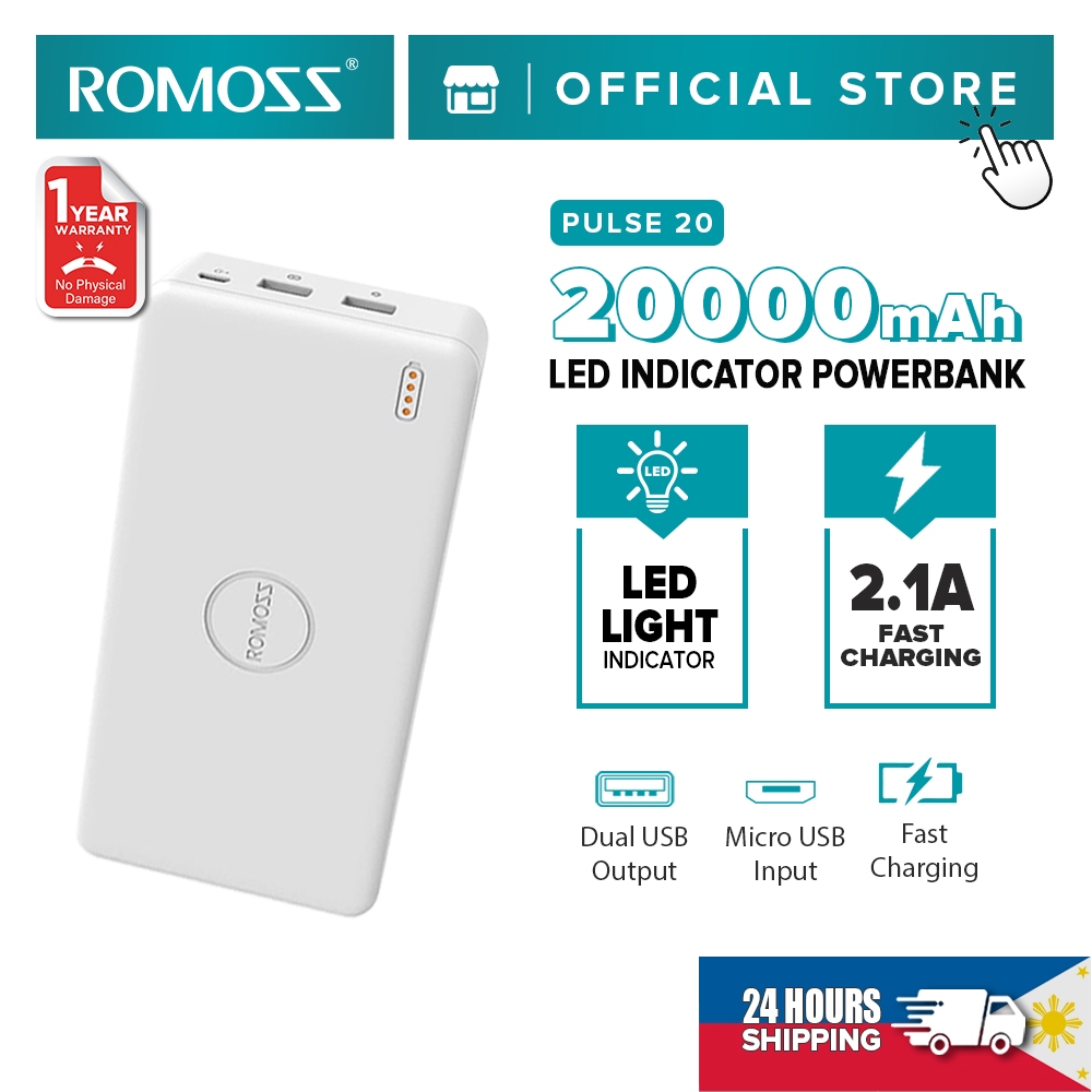 Romoss Pulse 20 20000mAh Input: Micro USB 5V 2.1A|Output: 1xUSB 5V 2.1A|1x USB 5V 1A Powerbank White