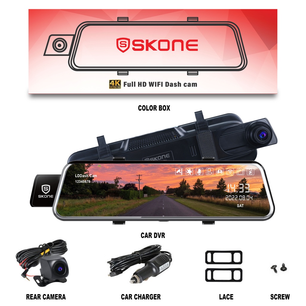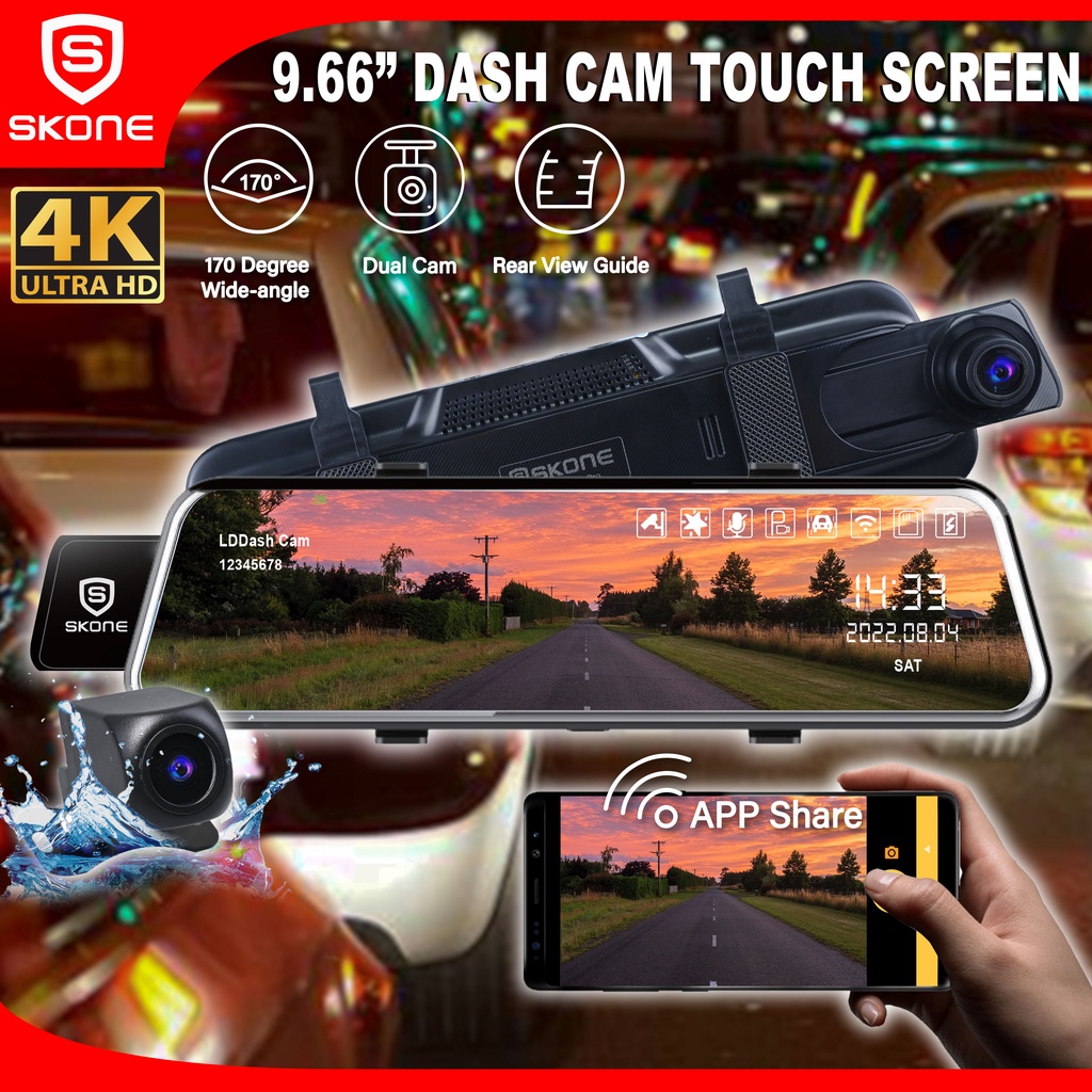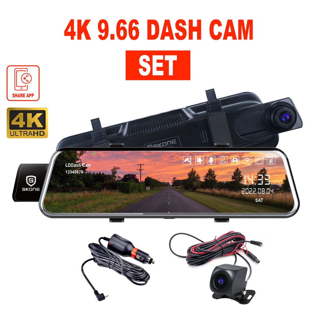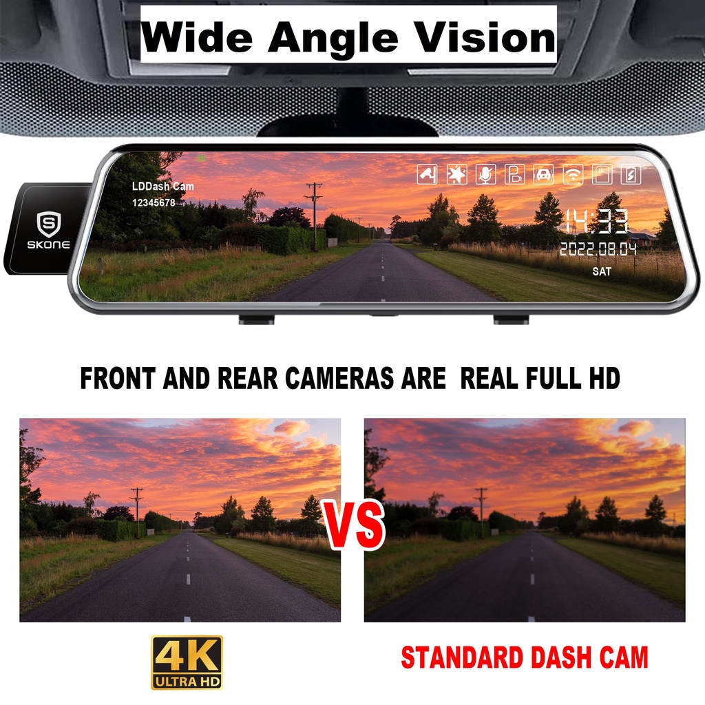 Dash Cam DVR Camera WiFi 4K + 2K Full HD Ultra Clear 9.66 Inch Wide Angle Record Night & Day Vision