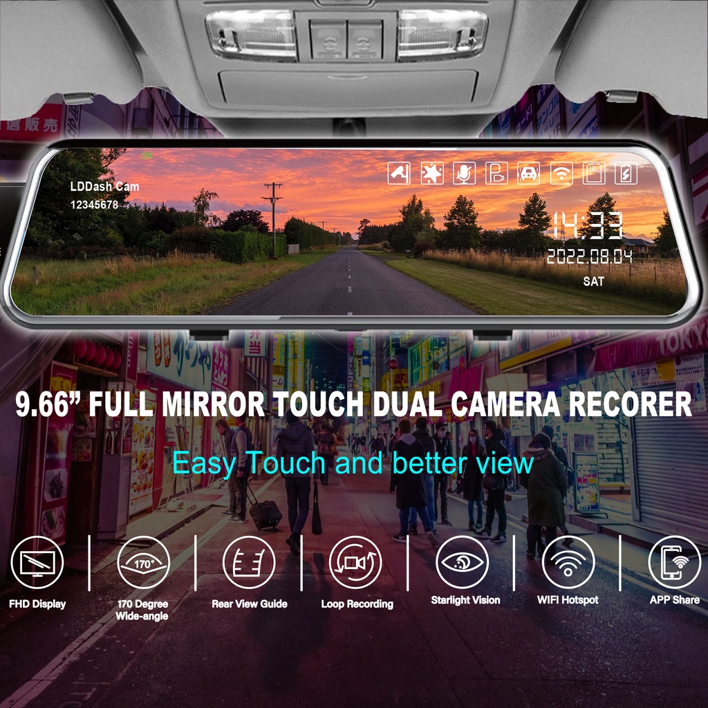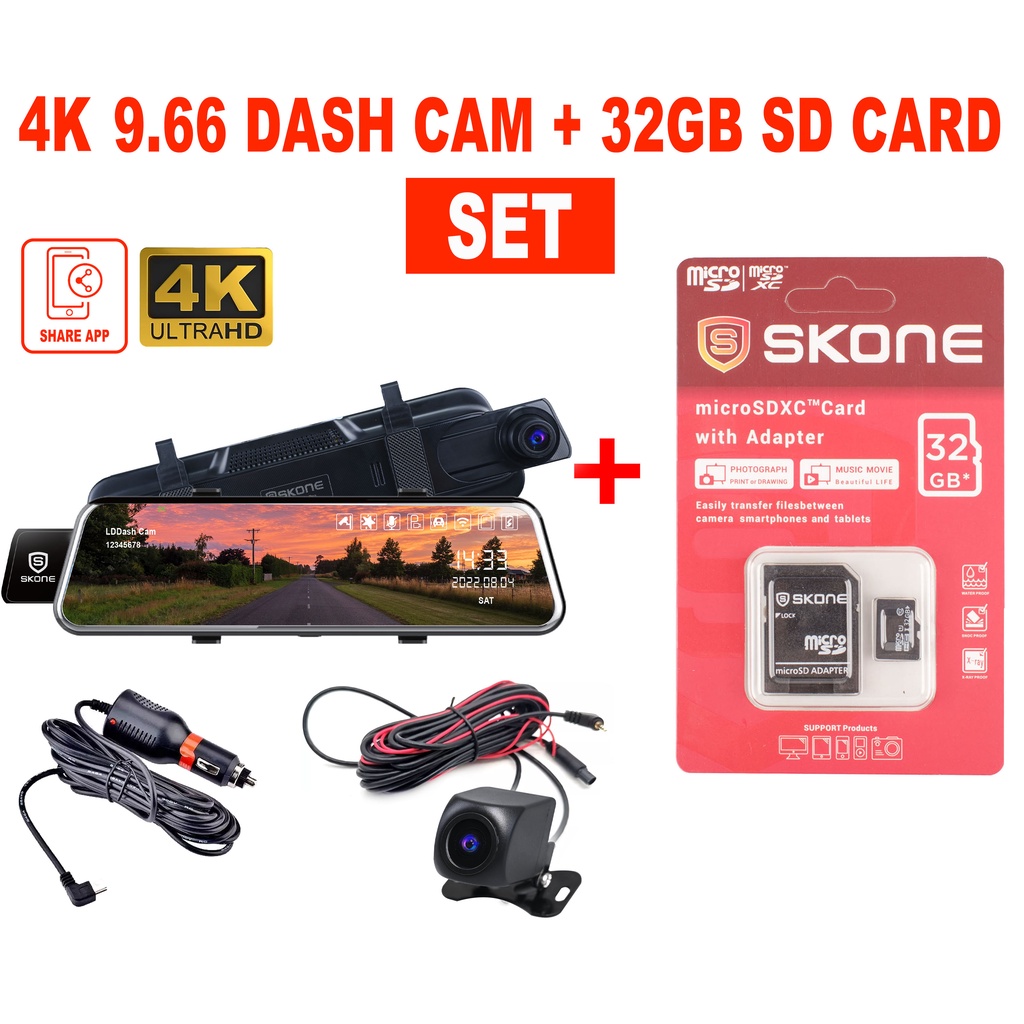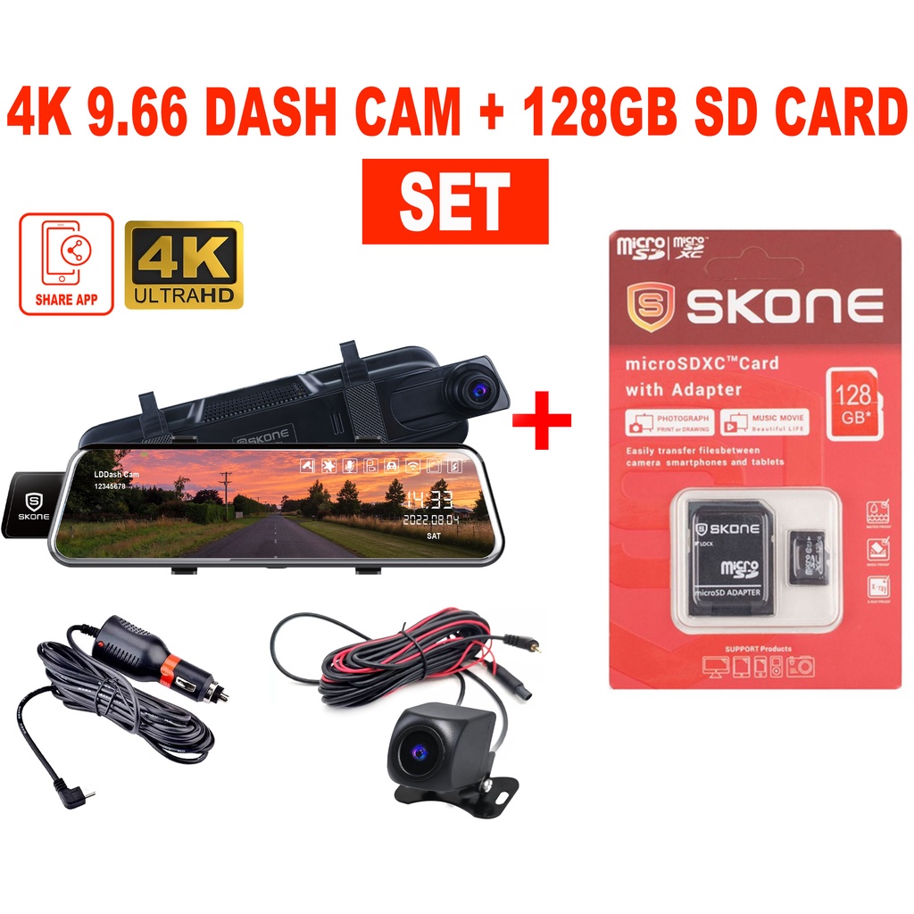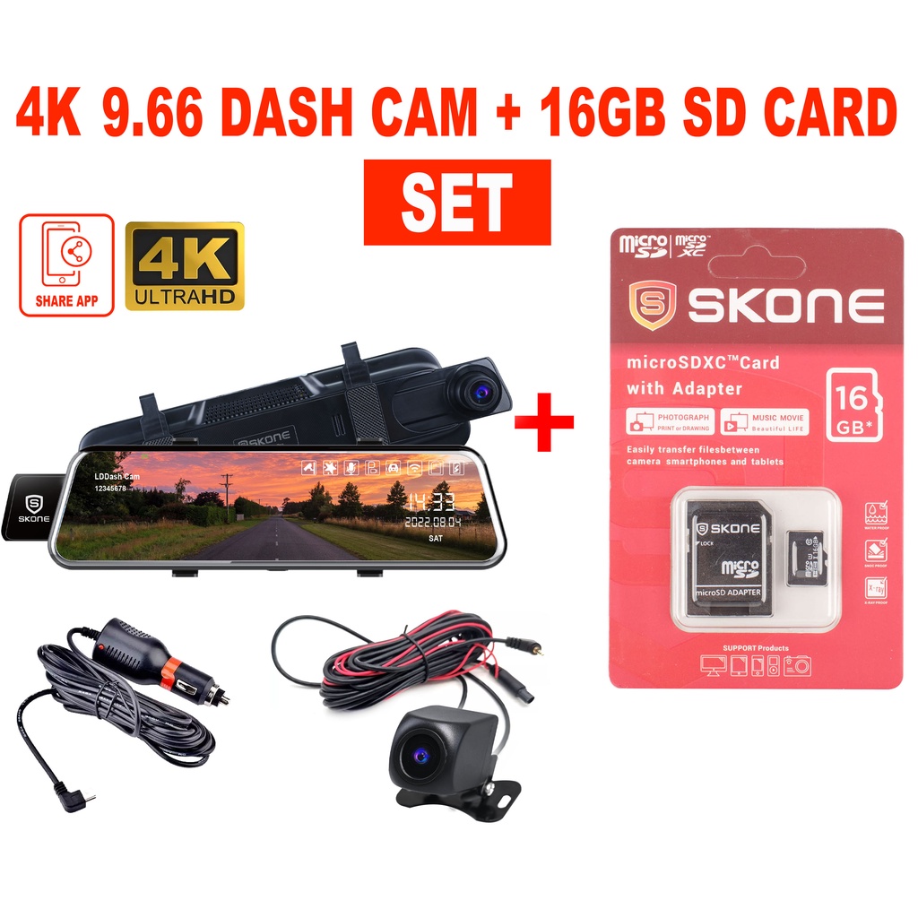 Dash Cam DVR Camera WiFi 4K + 2K Full HD Ultra Clear 9.66 Inch Wide Angle Record Night & Day Vision