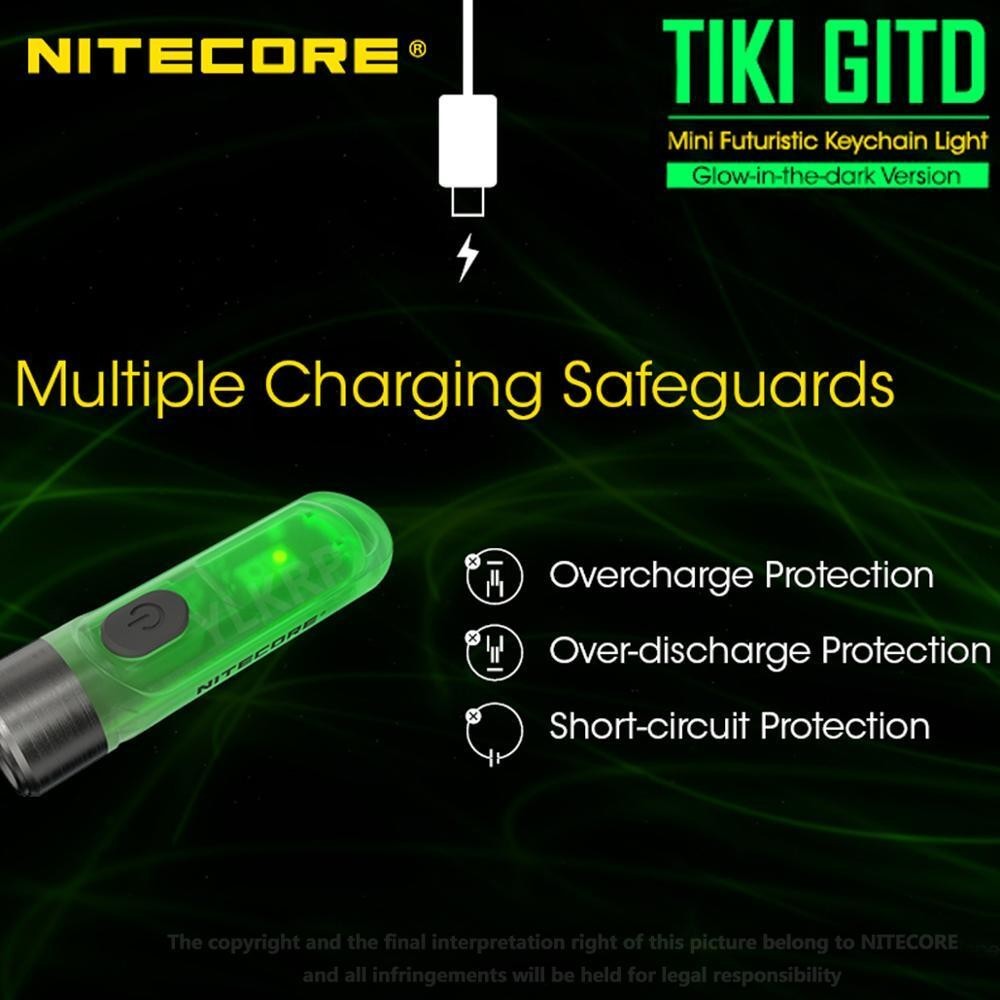 100% Original NITECORE TIKI GITD TIKI LE 300 Lumens MINI futuristic keychain light USB-C Rechargeable