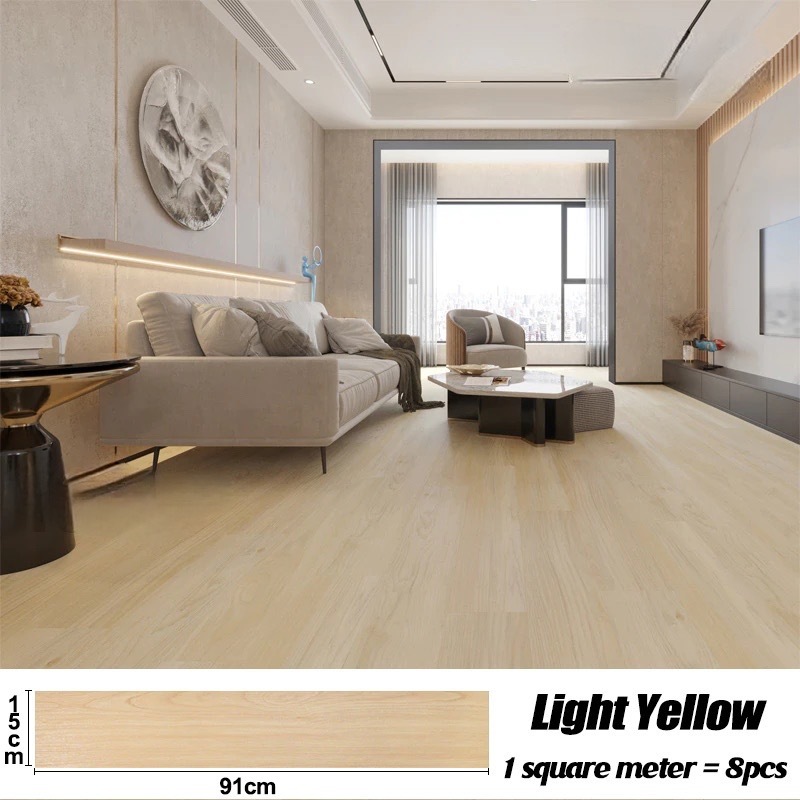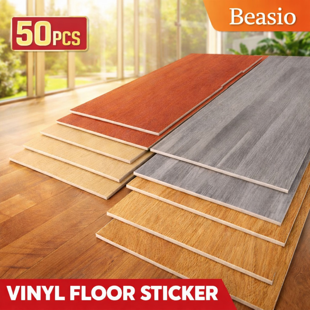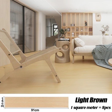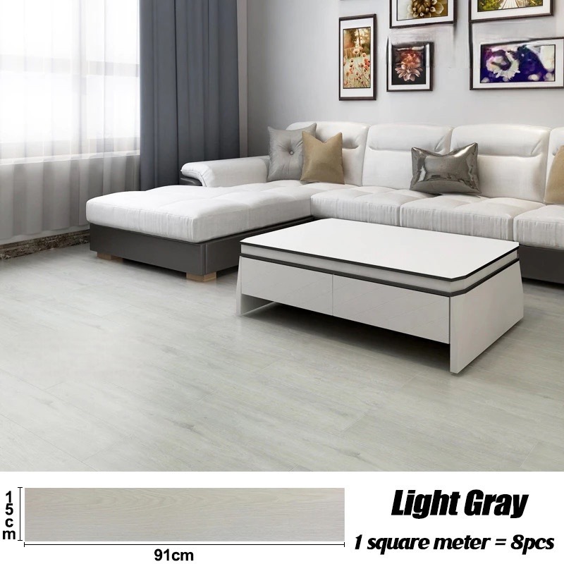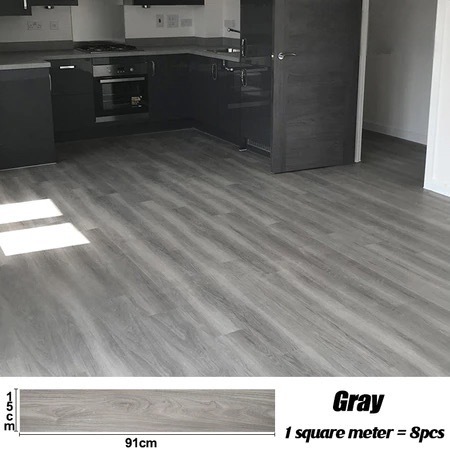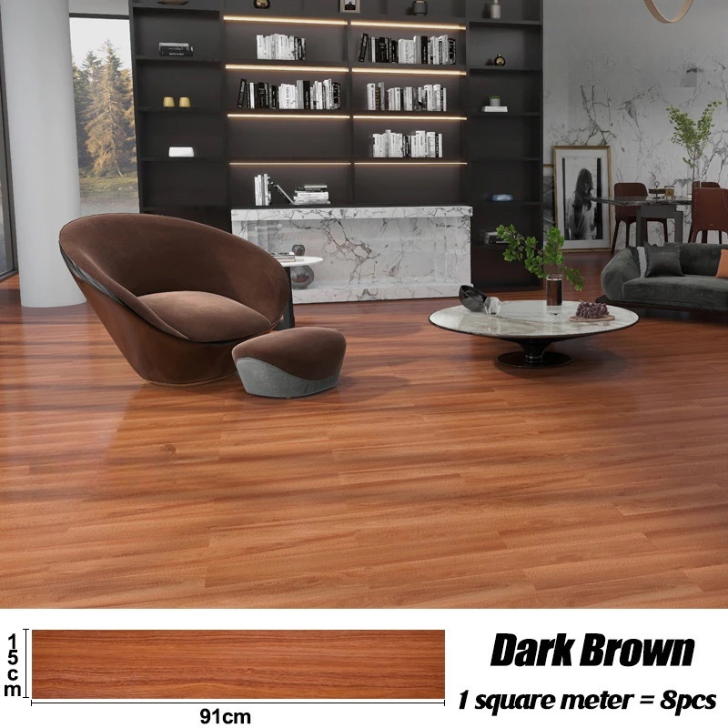 50PCS Vinyl Tile Floor Stickers Wood Grain Self-Adhesive Waterproof PVC 91x15cm For Kitchen Bathroom