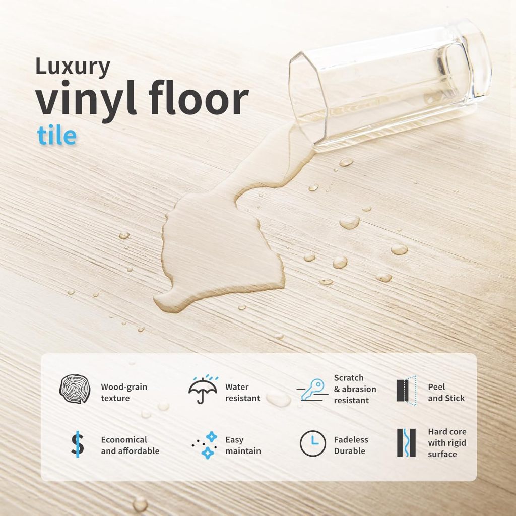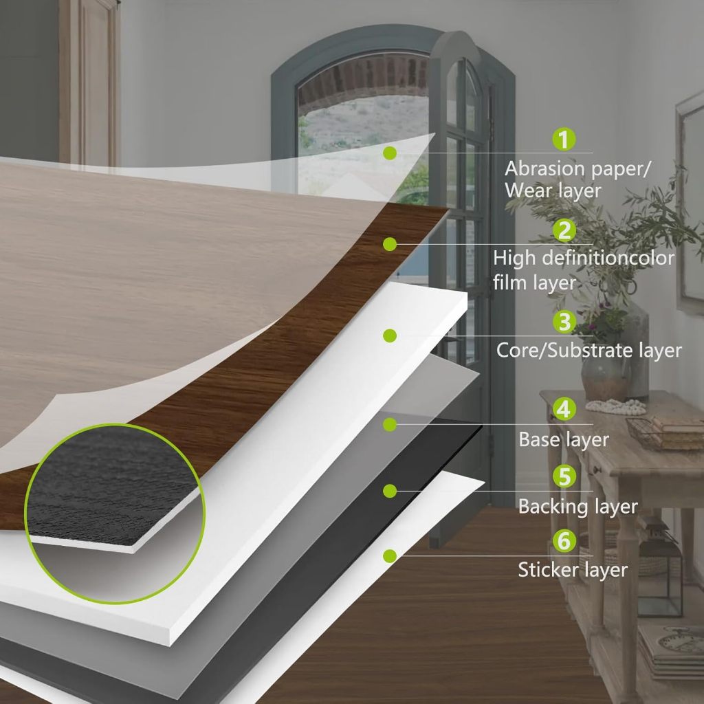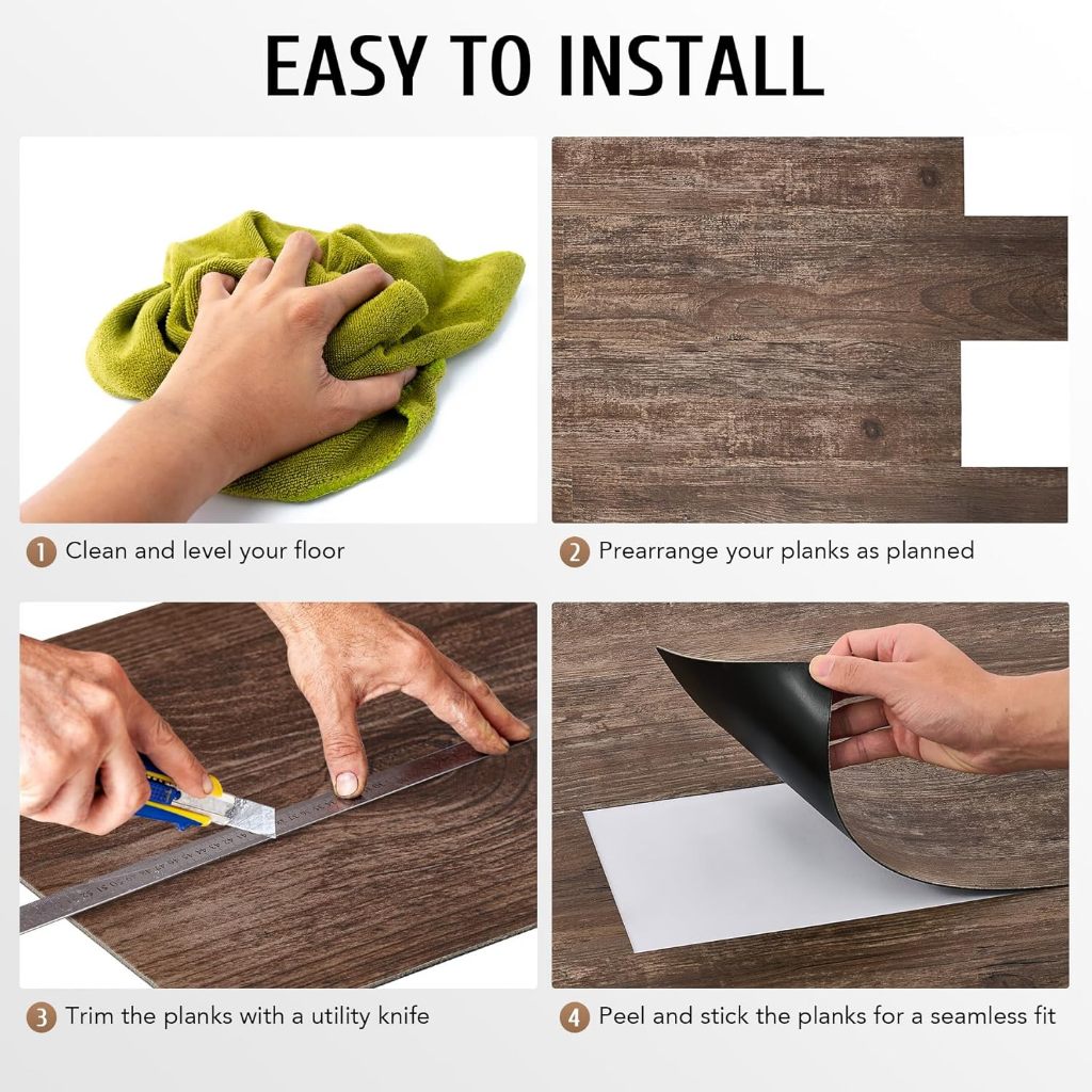 50PCS Vinyl Tile Floor Stickers Wood Grain Self-Adhesive Waterproof PVC 91x15cm For Kitchen Bathroom