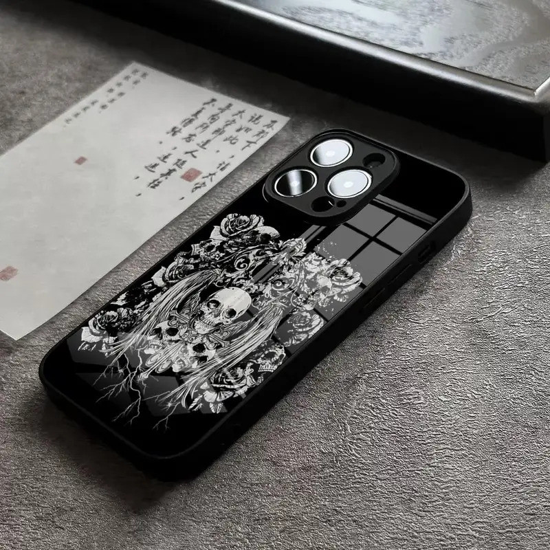 BK-1 Cool Gothic Sculpture Girl Phone Case For IPhone 14 Pro Max 17,15 Pro 12 11 13 Mini X XR XS 16 Plus SE Tempered Glass Back Cover