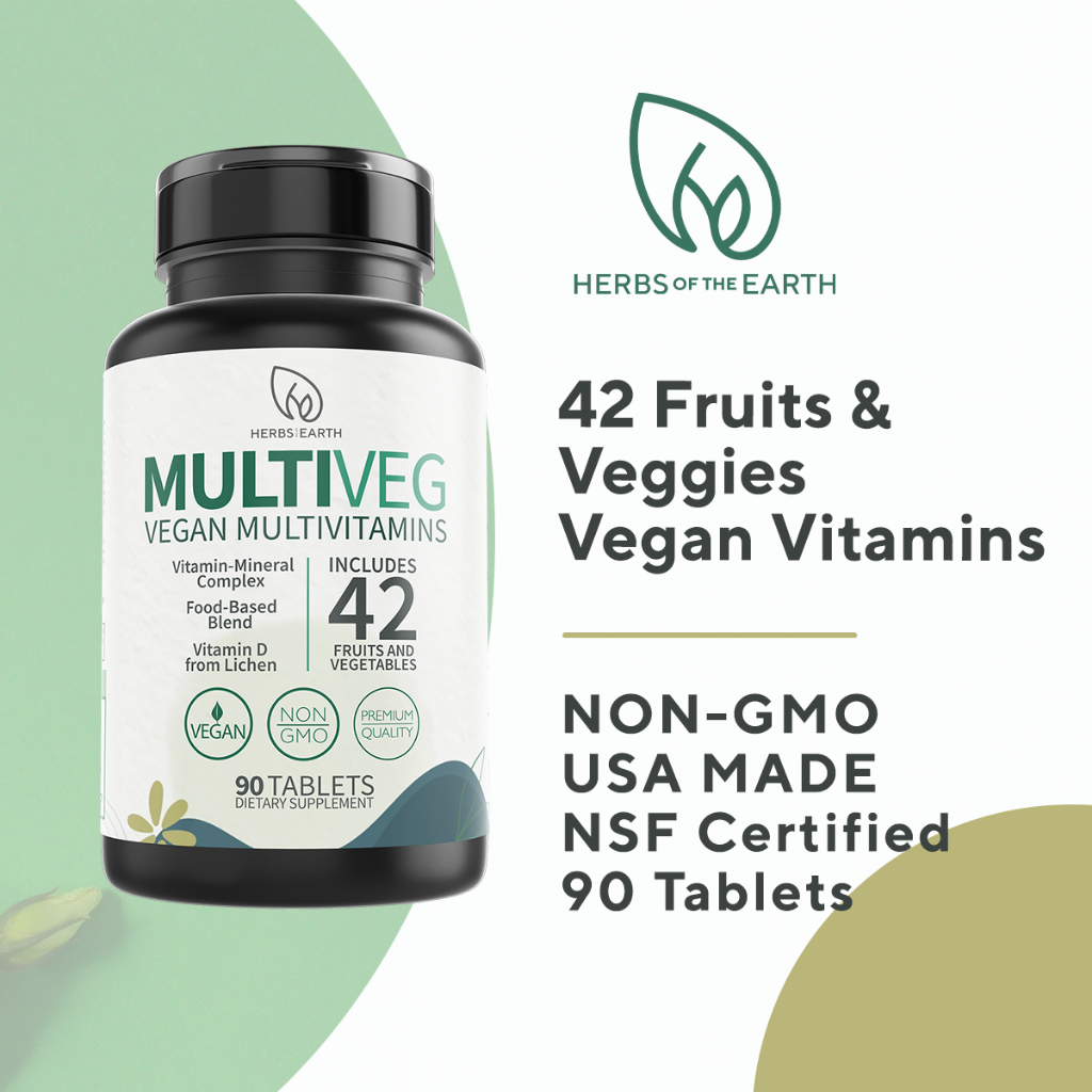 MultiVEG Vegan Multivitamin Supplement 90 Tablets with 42 Fruits and Vegetables Herbs of the Earth