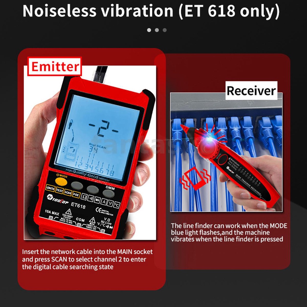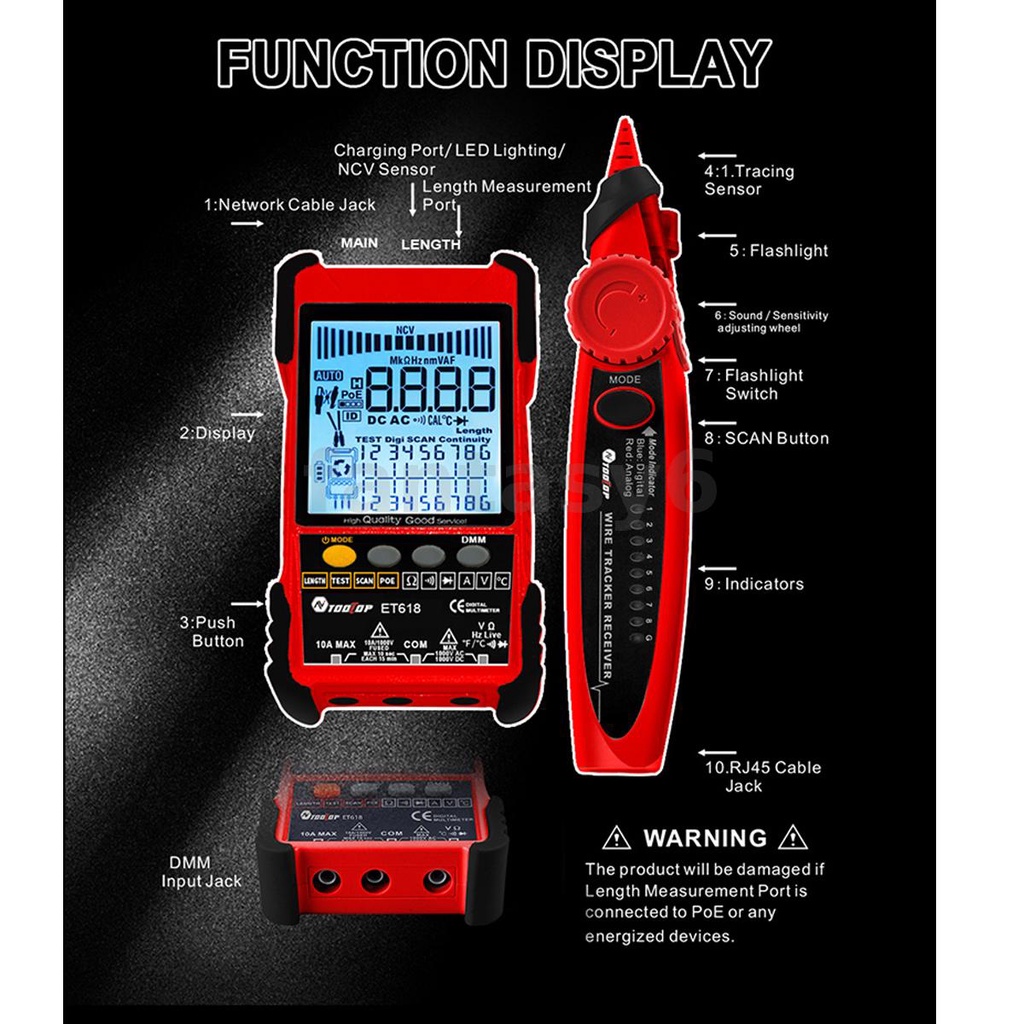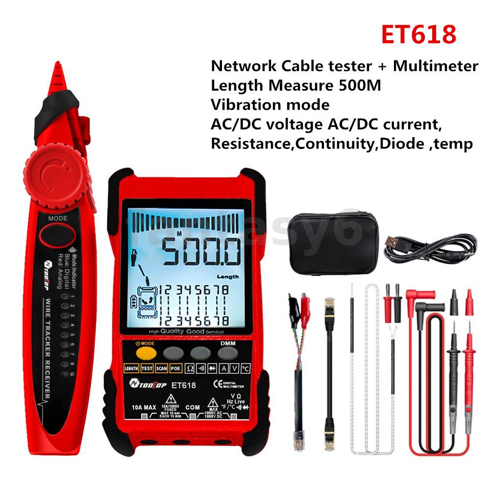 TOOLTOP LCD Network Cable Tester + Multimeter 2in1 400M/500M Network Cable Length Measure AC DC Current Voltage Measure