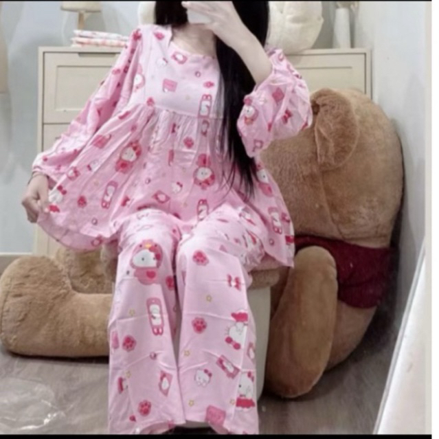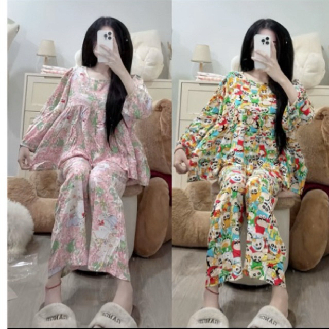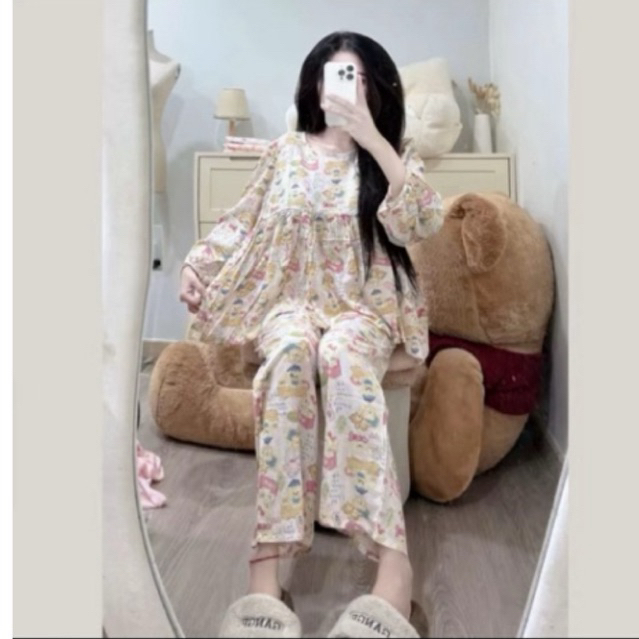 Babydoll Tole Set with Cute Patterns Pajama for Woman Sleepwear