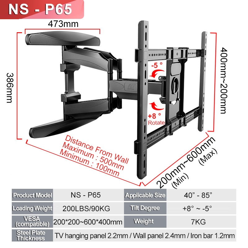 TV wall-mounted 40-75 inch rotary tilt LCD LED display universal suspension bracket - NS-767-L600
