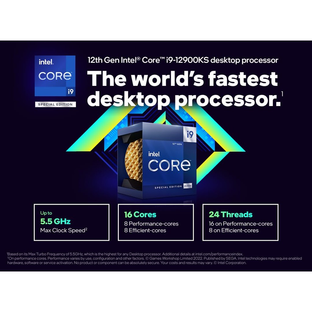 Intel CPU 12th Generation Core i9-12900KS LGA1700 Processor 16 cores / 3.4GHz Up to 5.5GHz / PBP 150W / 6xxChipset BX8071512900KS silver