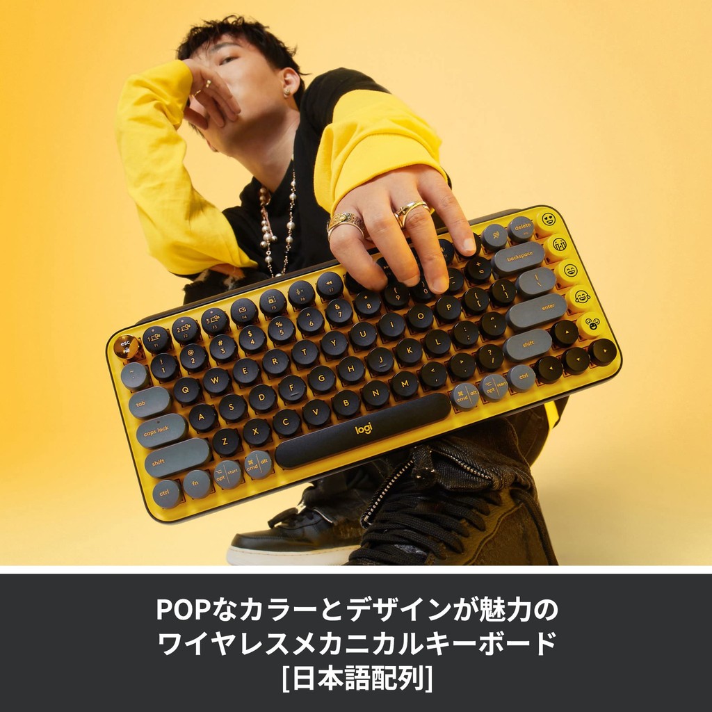Logicool POP KEYS K730 Wireless Mechanical Keyboard - Various Colors (Yellow, Gray, Purple, Rose) - Japanese Layout, Bluetooth, Compatible with Windows, Mac, Chrome, iPad, iOS, Android