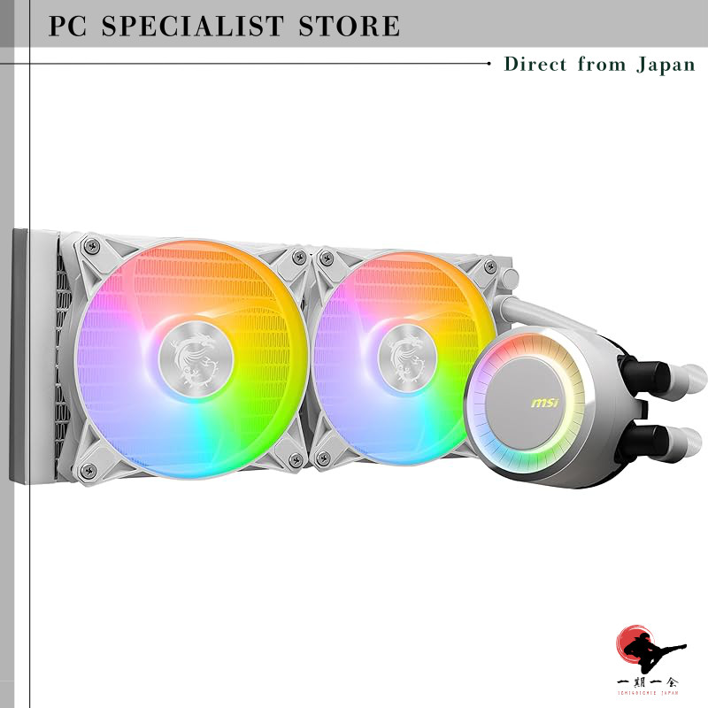 MSI MAG CoreLiquid E240 White - AIO ARGB CPU Liquid Cooler - Rotating Cap Design - 240mm Radiator - Dual 120mm ARGB PWM Fans - Compatible with LGA 1700/1851 / AM5/AM4