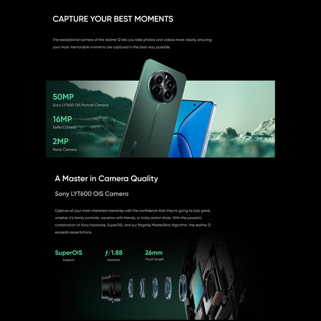 realme 12 4G Smartphone | 8GB+256GB | Snapdragon 685 | 6.67" FHD+ 120Hz AMOLED Display | 5000mAh Bat