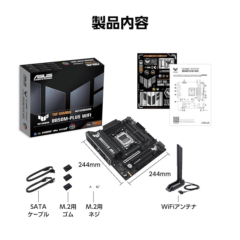 ASUS AMD AM5 AMD B850 micro-ATX motherboard Ryzen 9000 & 8000 & 7000 Series compatible/TUF GAMING B850M-PLUS WIFI Official domestic distributor product.