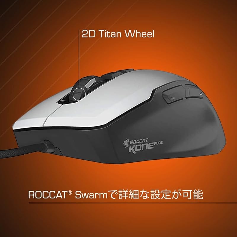ROCCAT Gaming Mouse Kone Pure Owl-Eye Wired Braided White / White Optical / 12K / Side Button / 88g / FPS RGB Windows 7 or later [Authorized Japanese Distributor