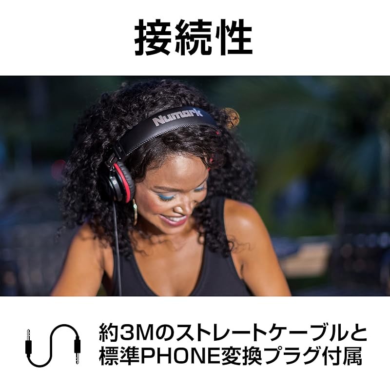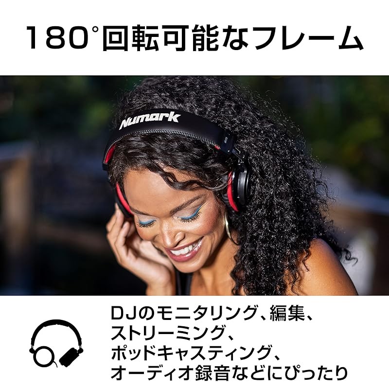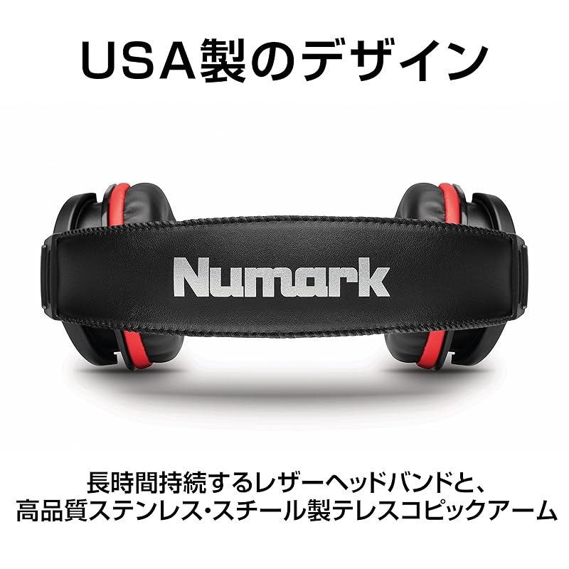 Numark Sealed Portable Monitoring DJ Headphones with 40mm drivers Soft leather ear pads with 3m cable (straight) HF175 Black & Red