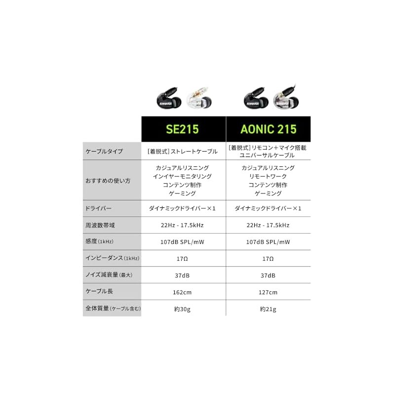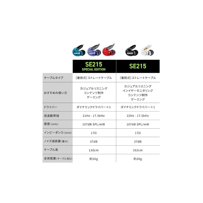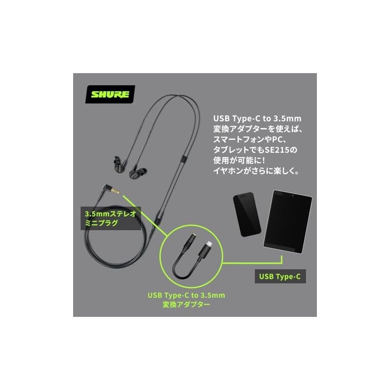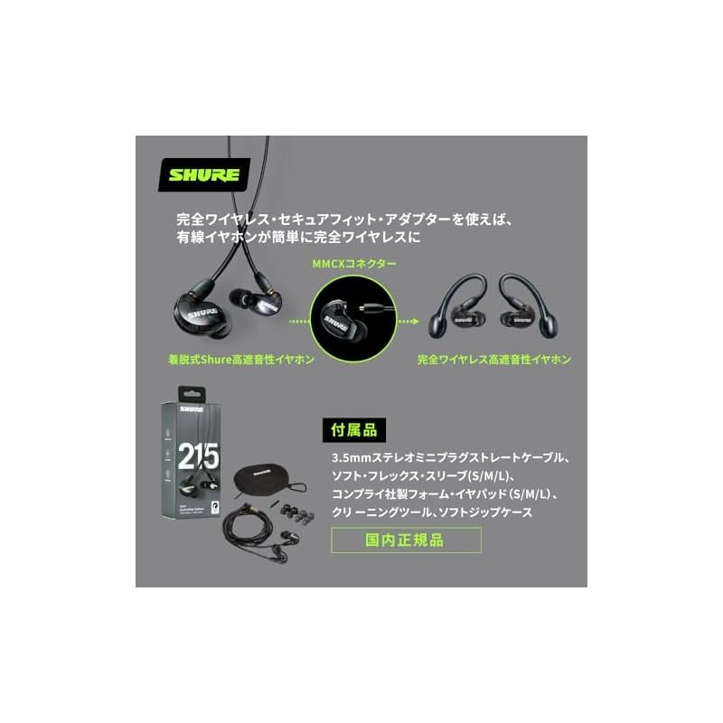 【VGP Hall of Fame Gold Award】 SHURE Sure Wired SE215-K-A Translucent Black Earphones: High sound insulation, gaming canal type, wireless conversion possible (sold separately) MMCX re-cable, professional ear monitor for delivery music, audio listening, rec