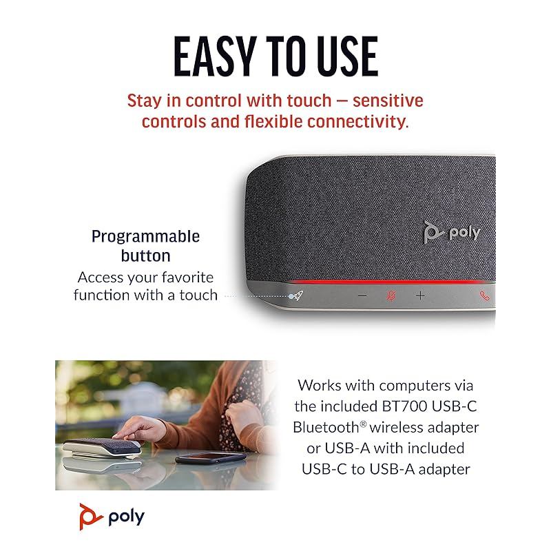 Poly Sync 20+ Speakerphone USB-C Bluetooth (with BT700 adapter) Portable for PC Mac Smartphone Continuous use for 20 hours with noise and echo reduction, Teams and Zoom integration, Manufacturer's 2-year warranty 8G0X7AA