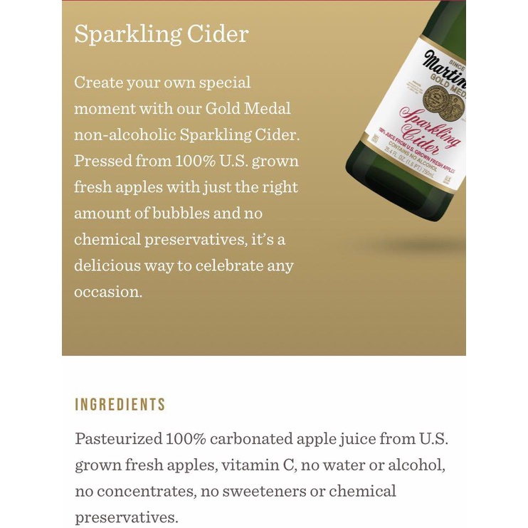 Martinellis Sparkling Cider 750ml {Made in USA}