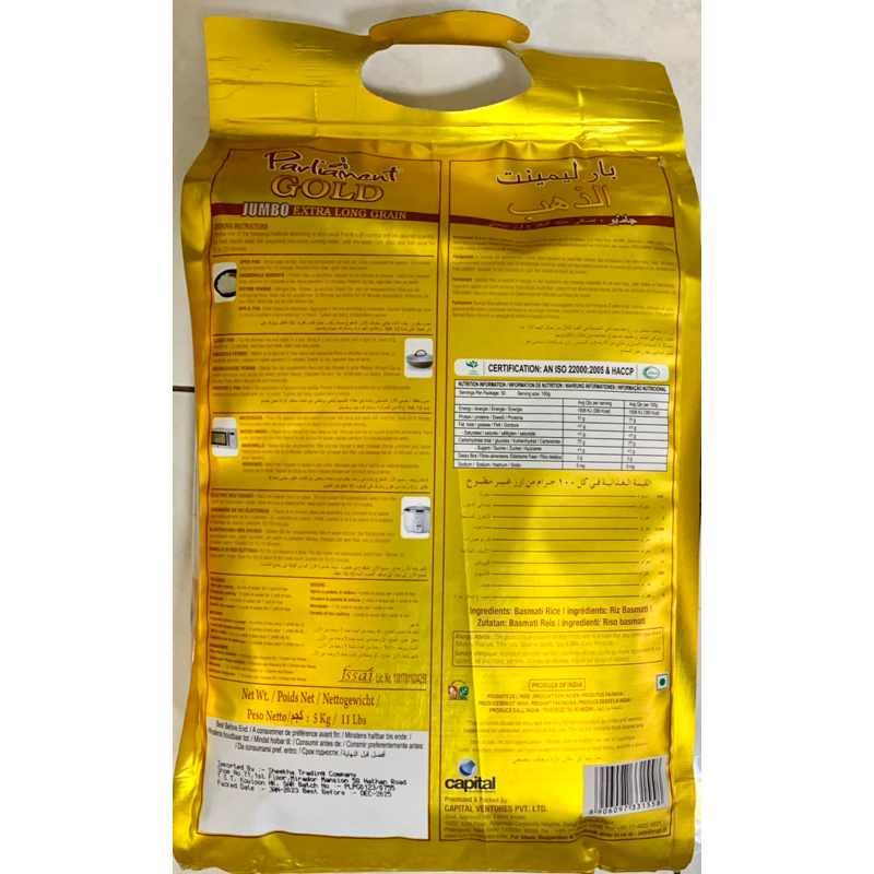 Parliament Gold Jumbo Basmati Rice 5kg {Made in India}