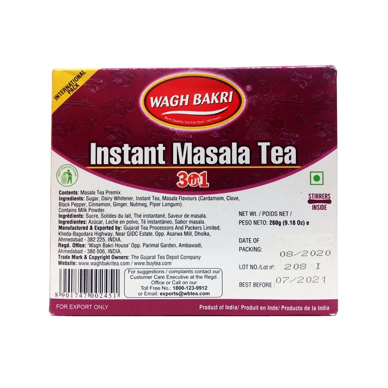 Wagh Bakri Instant Masala Tea - 3in1 - Spiced Tea From India (260g) Contains 10 Sachets