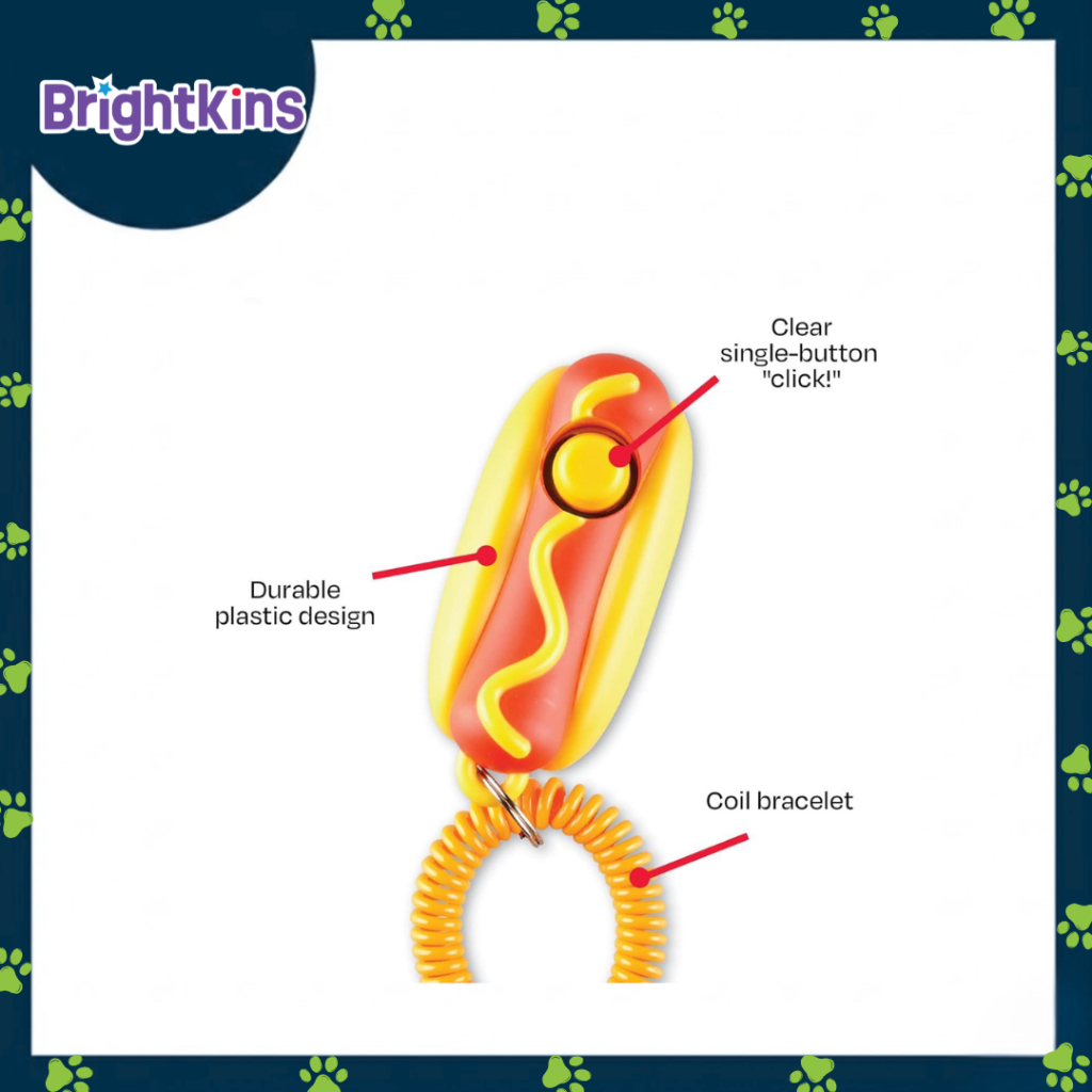 Ogapets Brightkins Smarty Pooch Training Clicker Hot Dog, Durable Portable with Sturdy Coil Bracelet