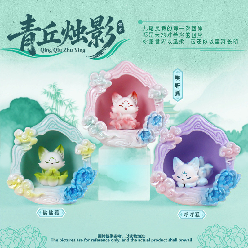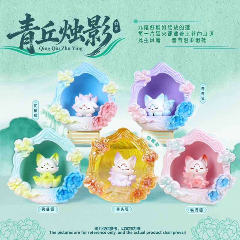 Glow ancient style nine tailed fox cure blind box set figure toys home warm ornament fox decoration resin model birthday gift for women
