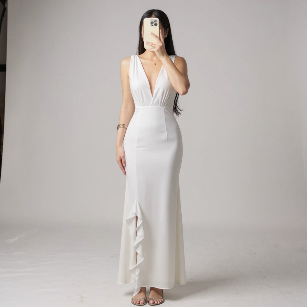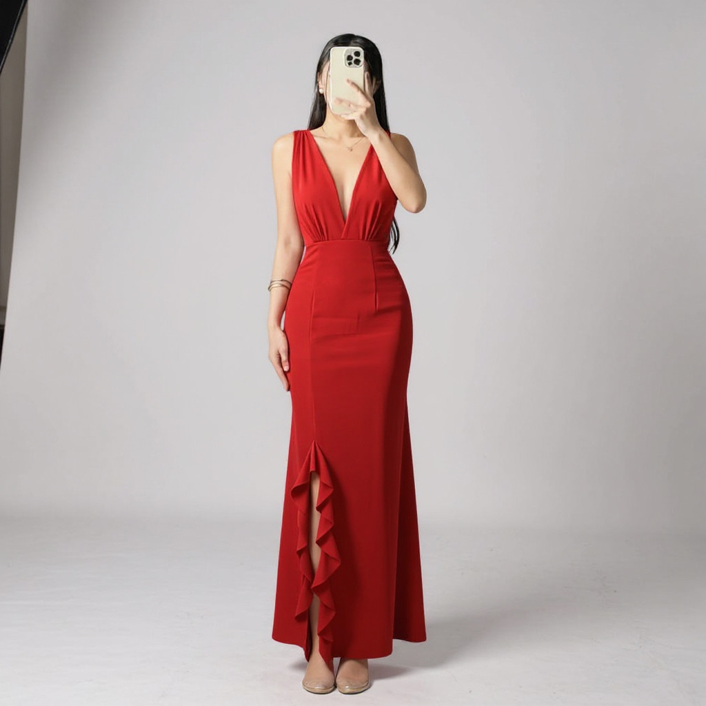 JTML Rumie V-Neck Maxi Ruffles Dress Knitted Fabric