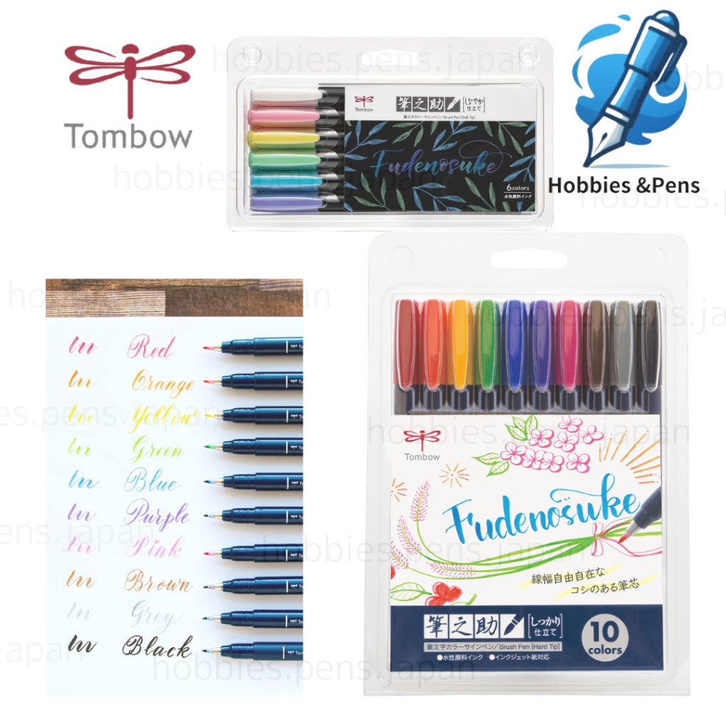 Tombow Fudenosuke Color Brush Pen Hard Tip Calligraphy Set 10 pcs Japan Authentic