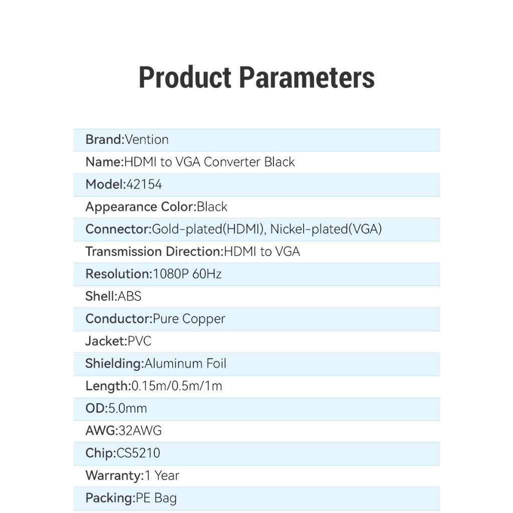 Vention 42154 HDMI to VGA Adapter 1080P HD Male to VGA Female Converter 0.15M Black