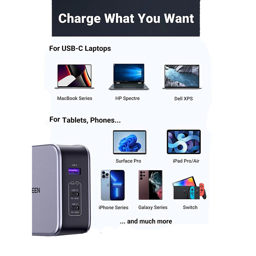 Ugreen Nexode 140W GaN Fast USB C Wall Charger [3 Ports]