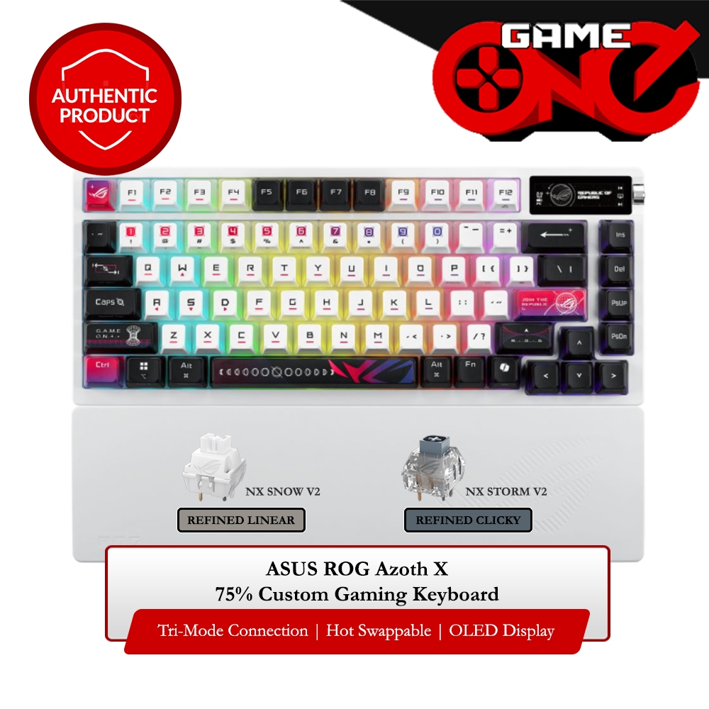 ASUS ROG Azoth X 75% Custom Tri-Mode Hot Swappable RGB Gaming Keyboard with OLED Display (M704)