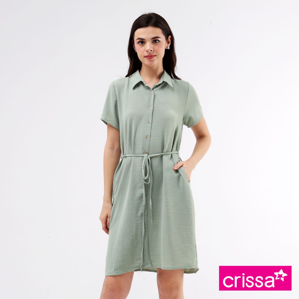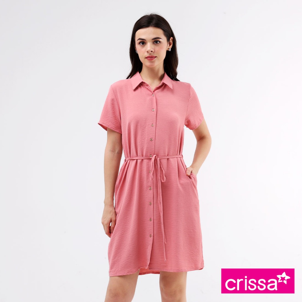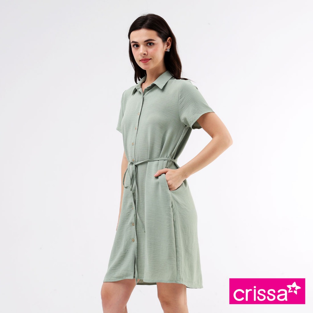 Crissa Linen Wrinkles Woven Short Sleeves Dress CLDT29-0047